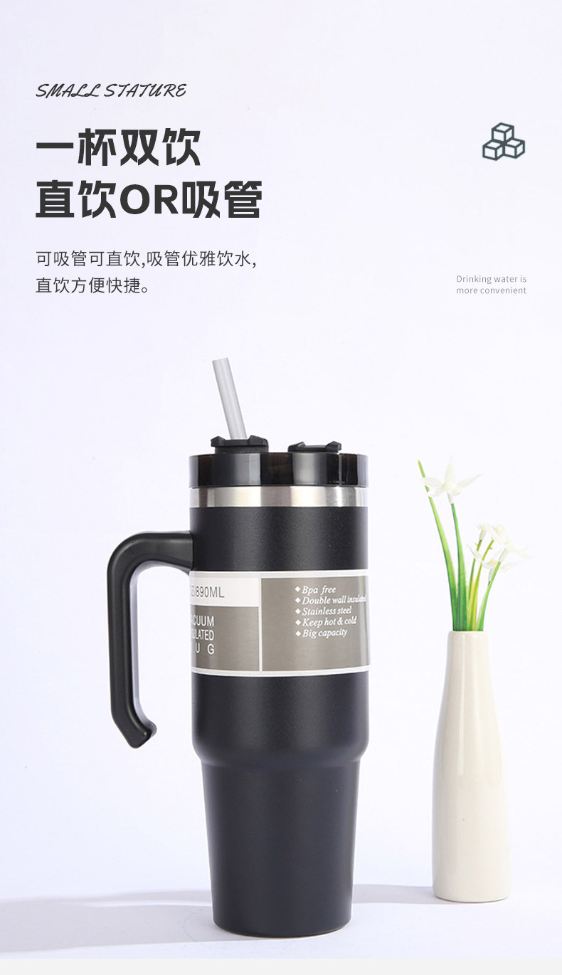 30oz cup large ice cup large capacity sports water cup men and women traveling handle cup coffee cup straw thermal insulation cup