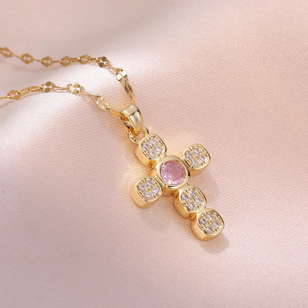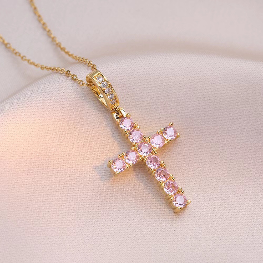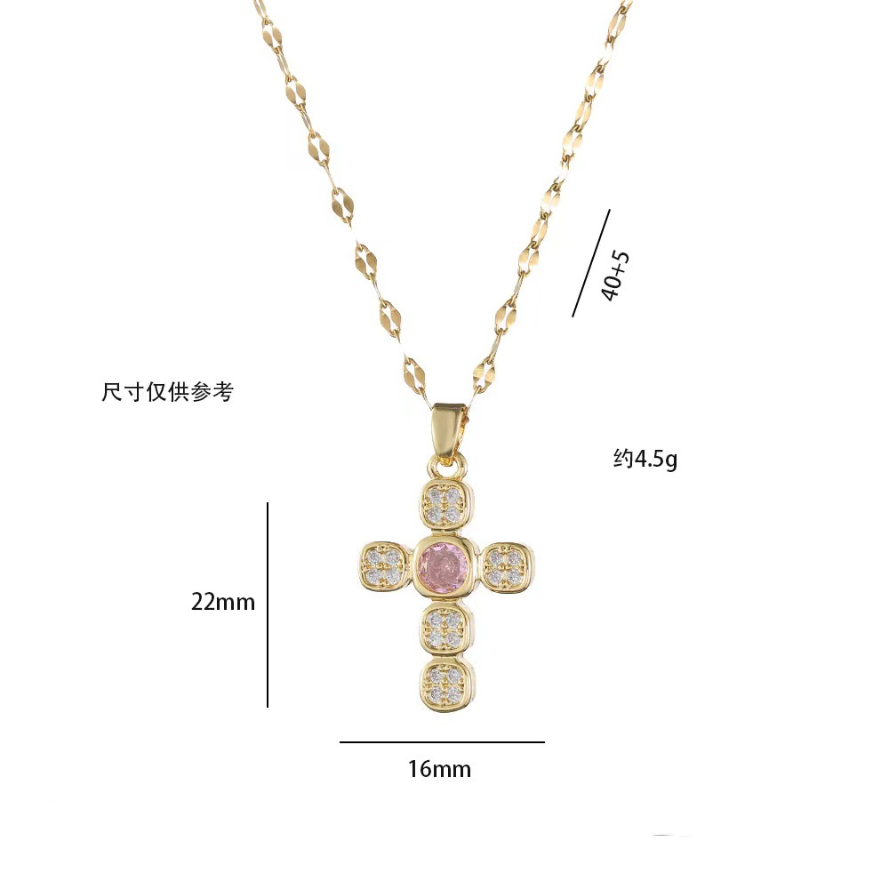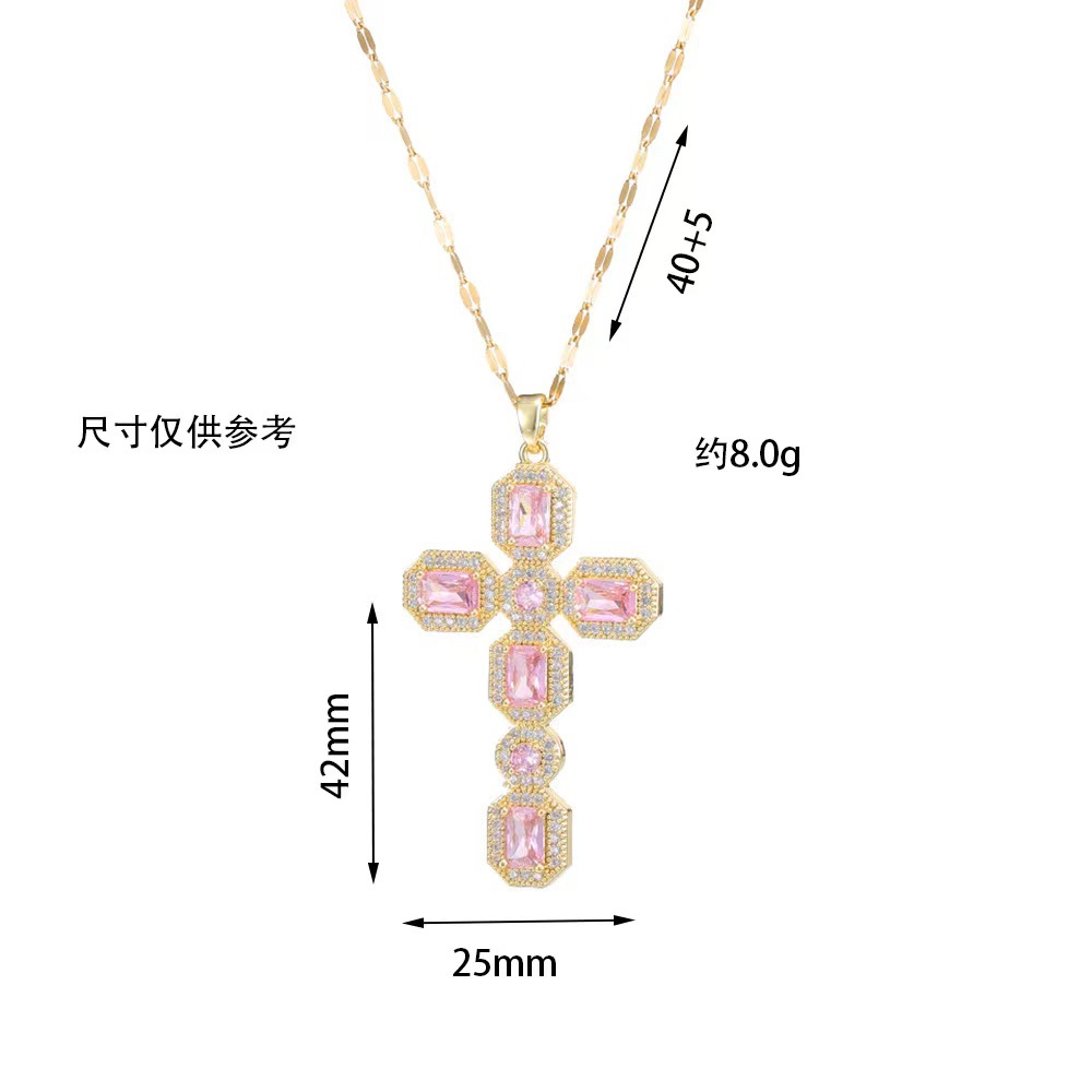 x2563 pink cross zircon necklace