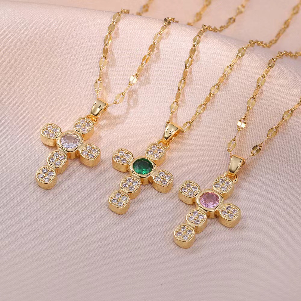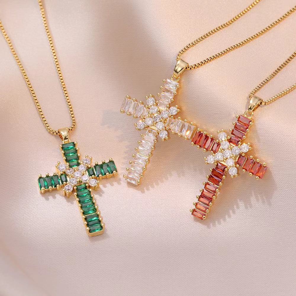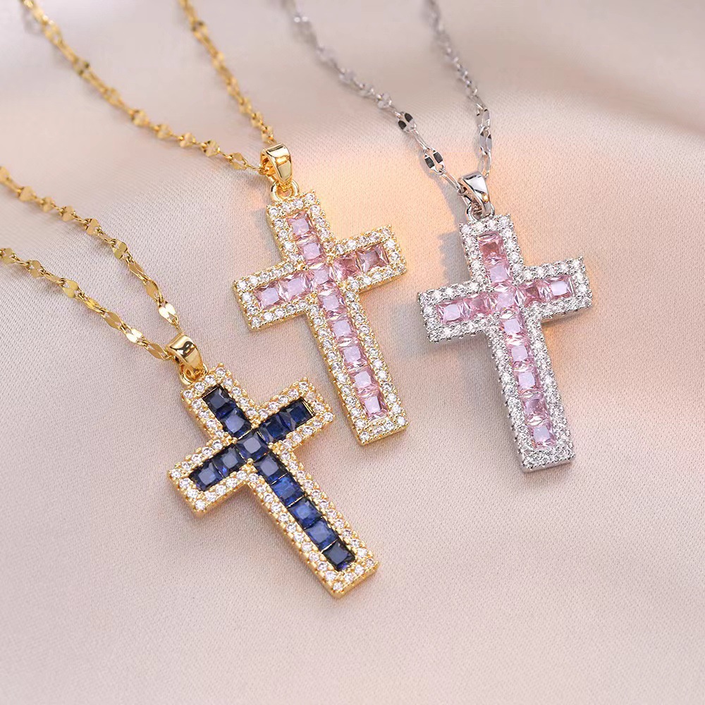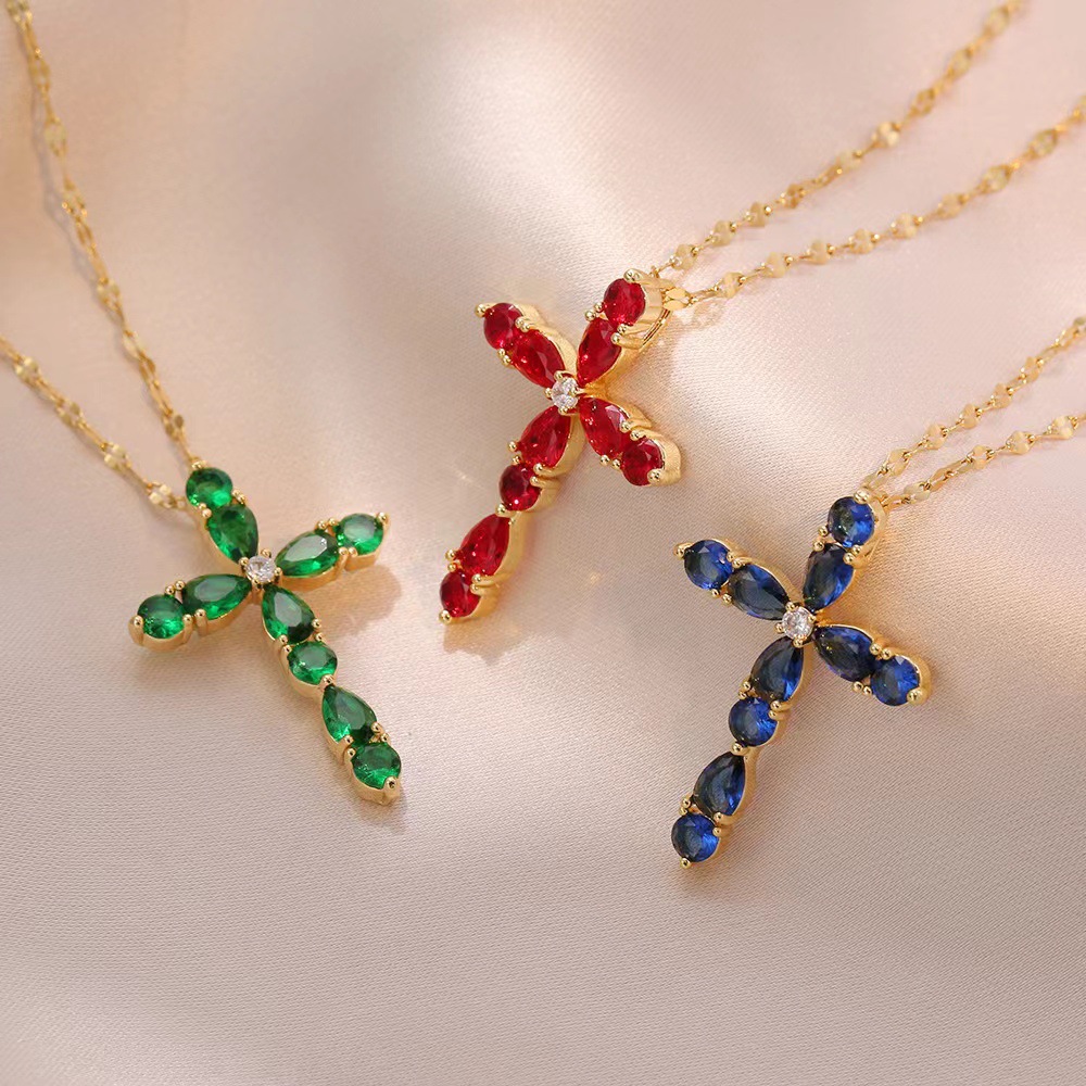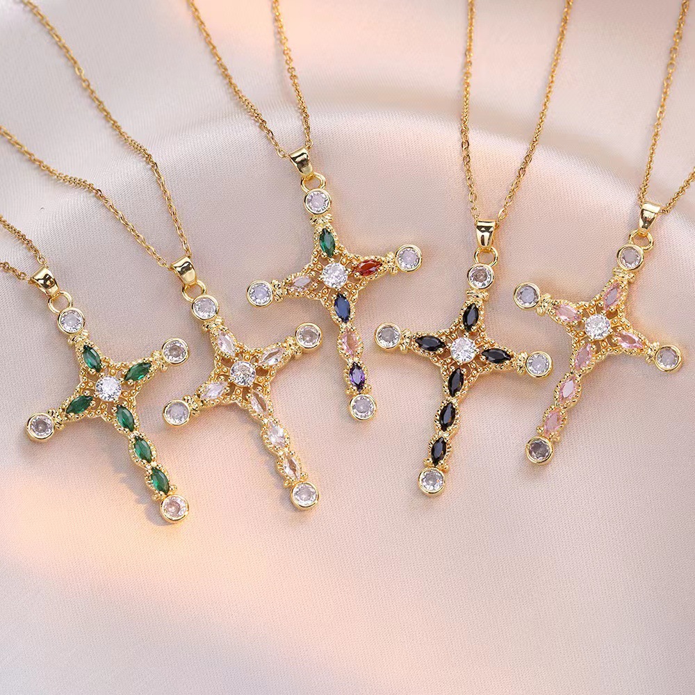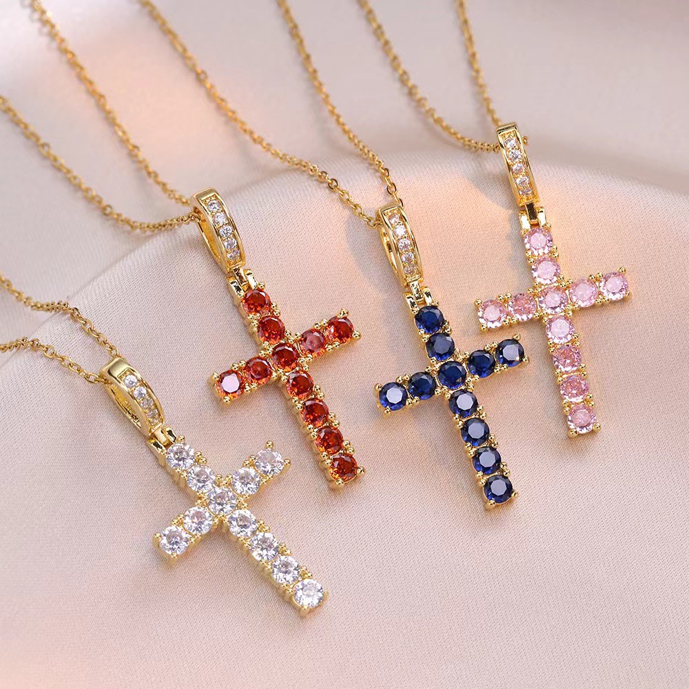x2565 color cross zircon necklace