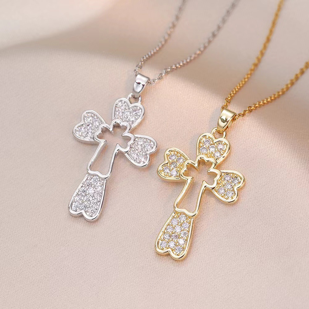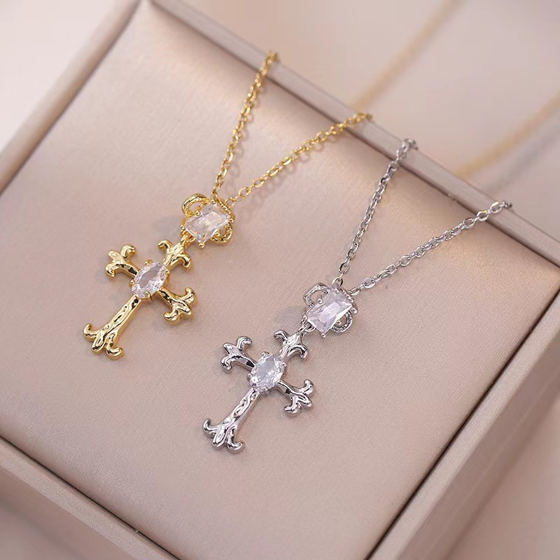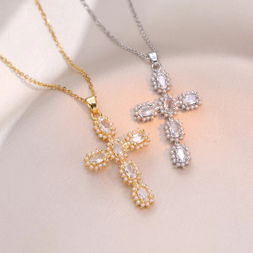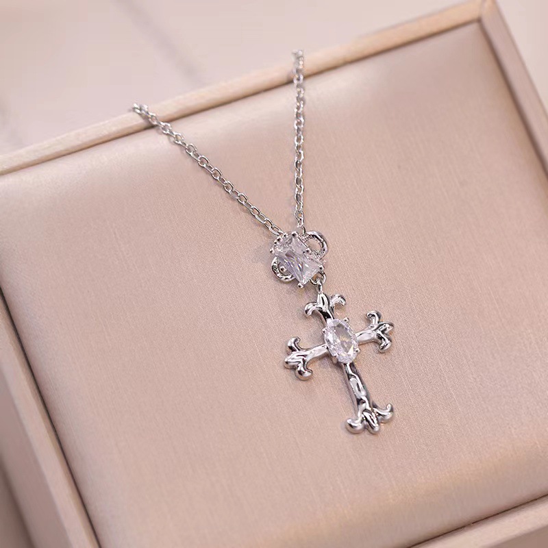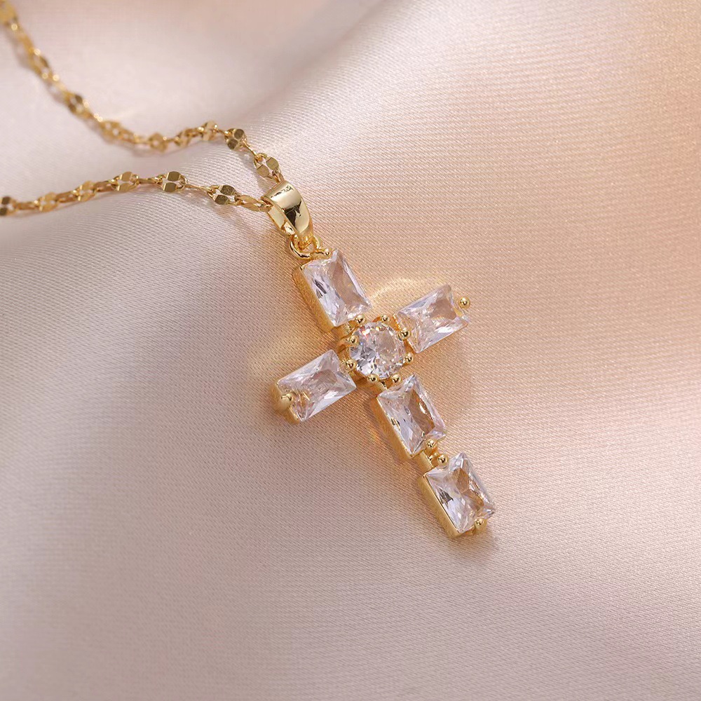 x2564 white cross zircon necklace
