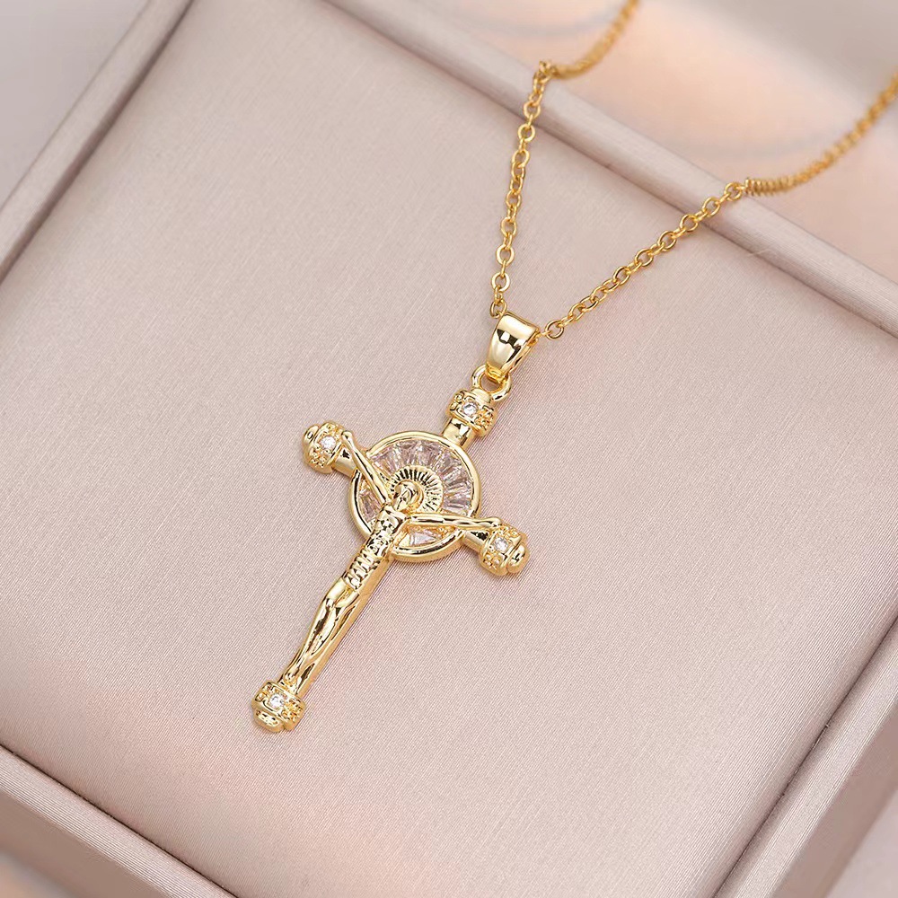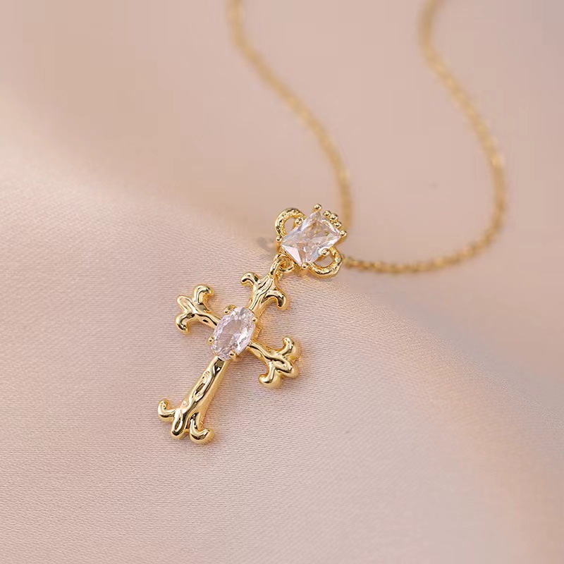x2383 gold color cross necklace