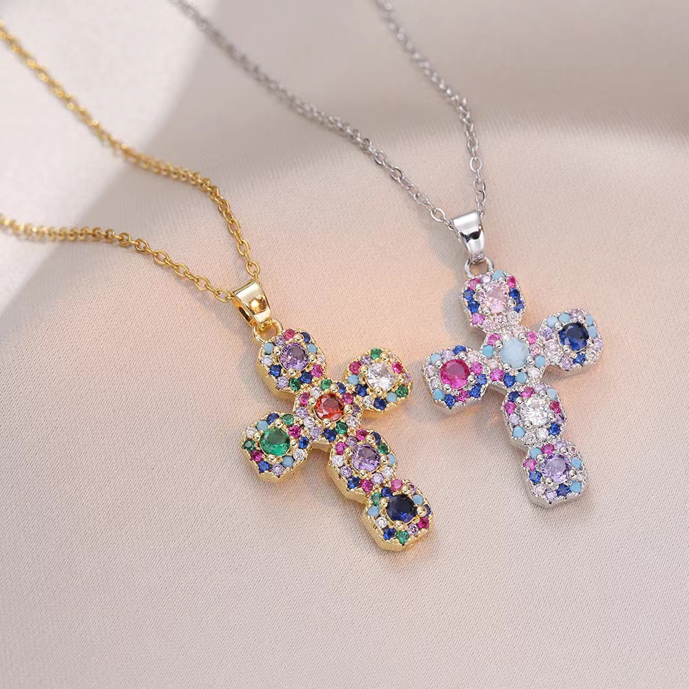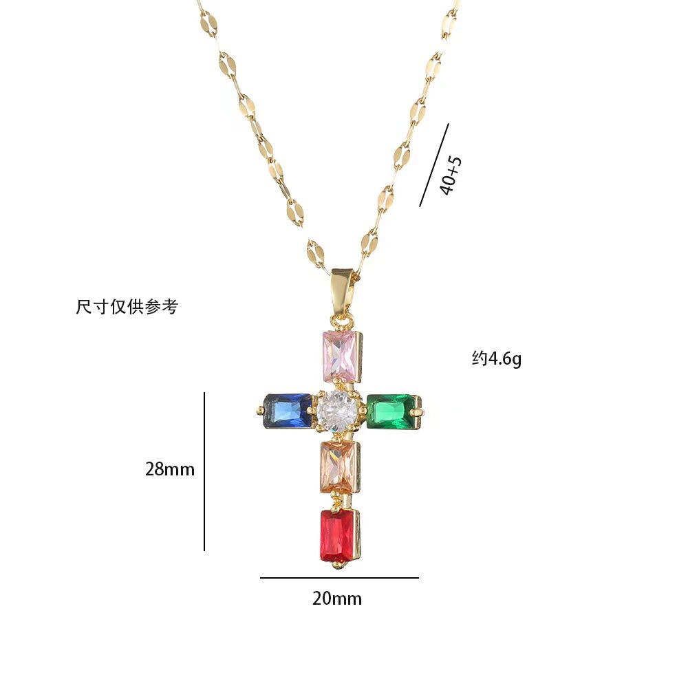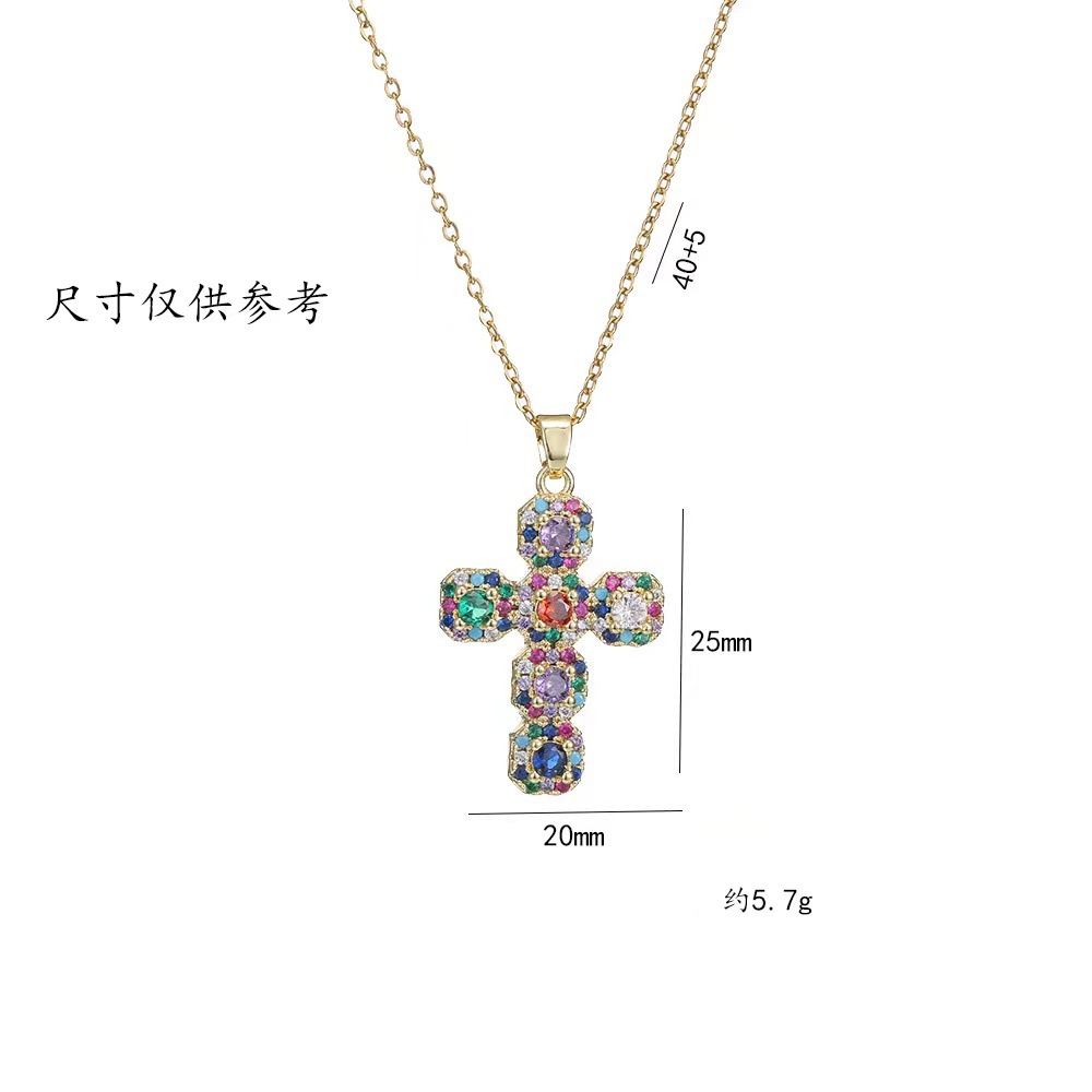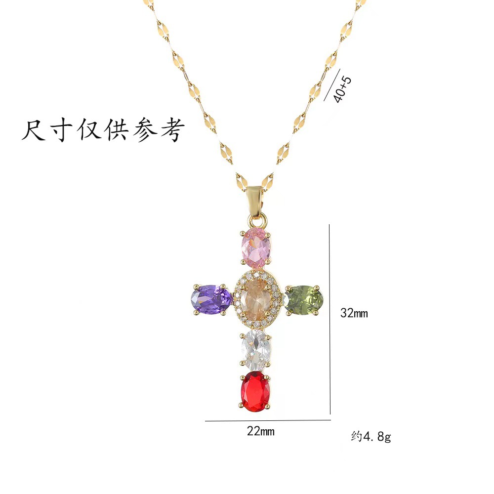 x2566 colorful cross zircon necklace