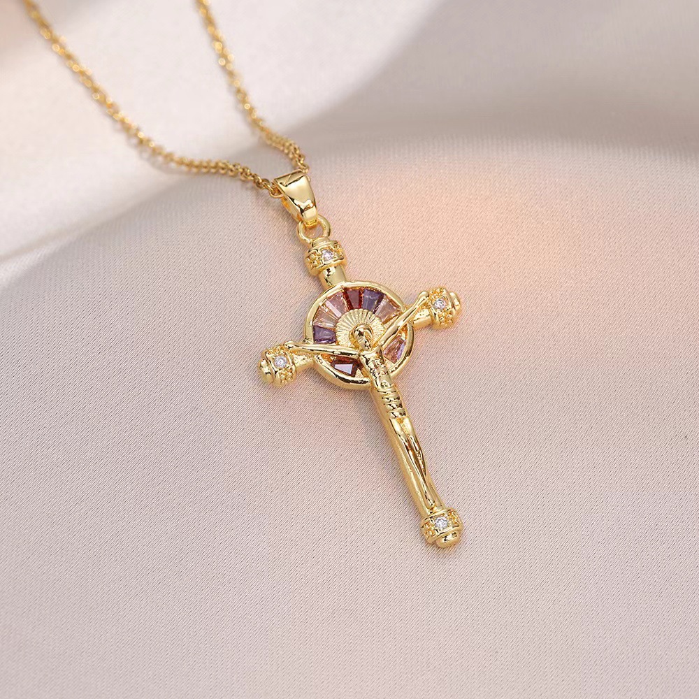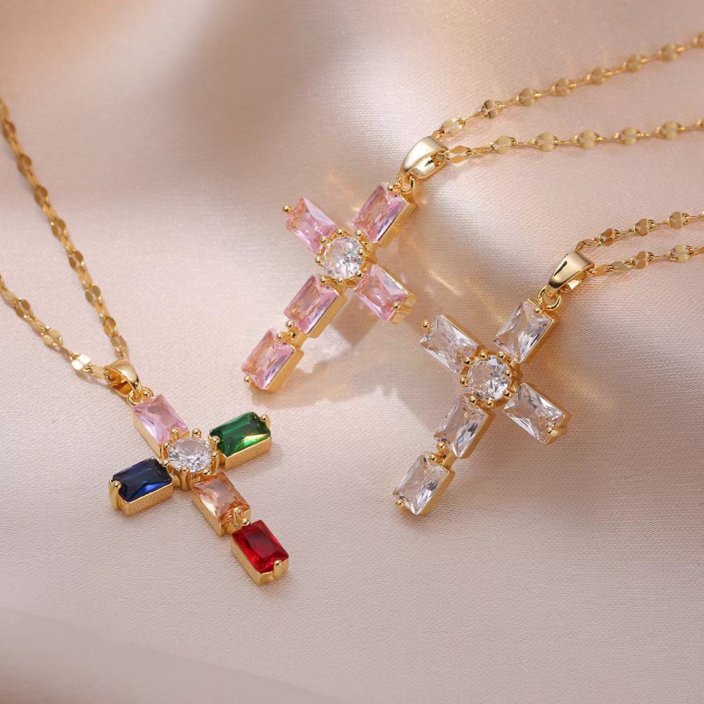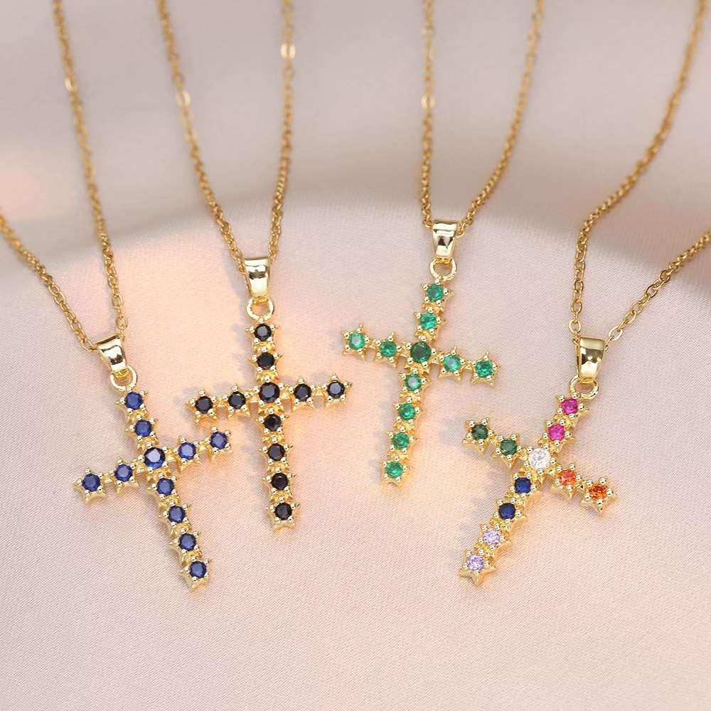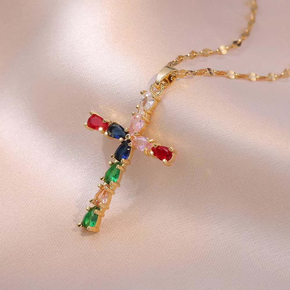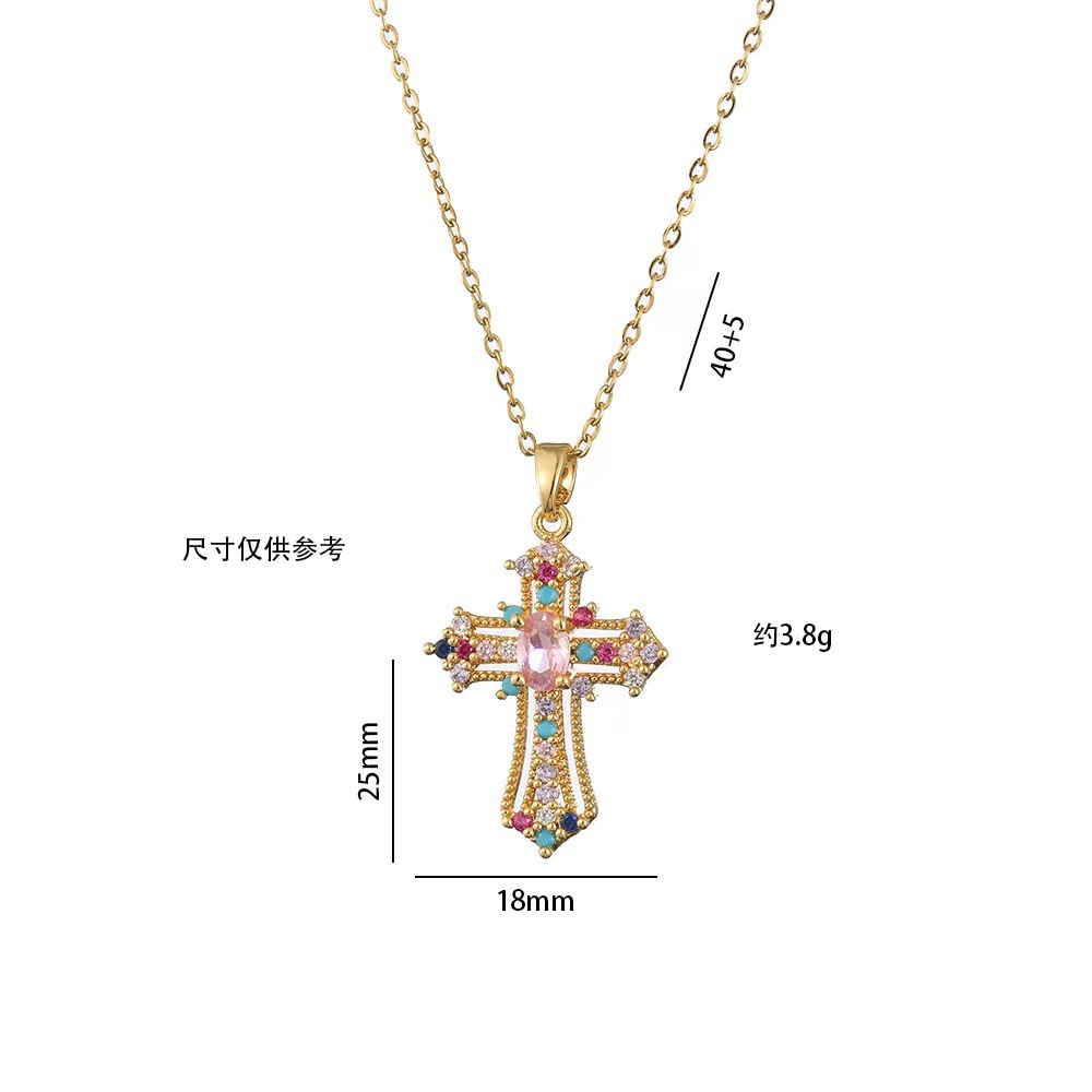 x2566 colorful cross zircon necklace
