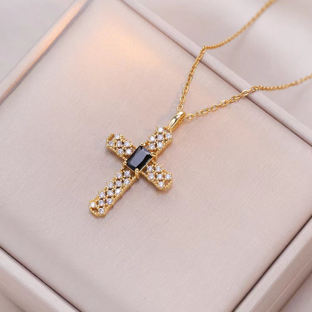 x2530 black gold cross necklace