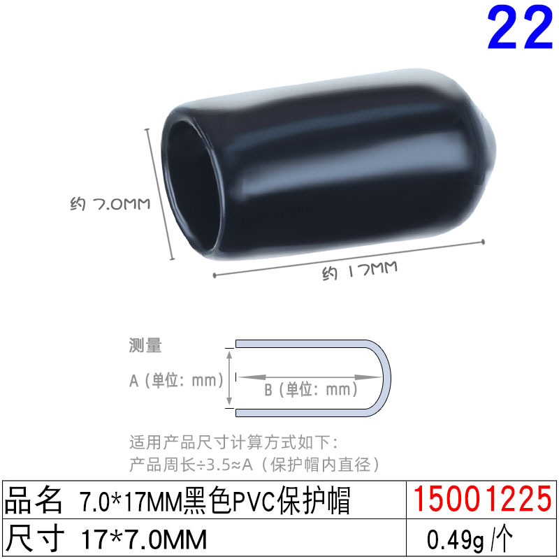 15001225# 7.0x17mm black pvc protective cap