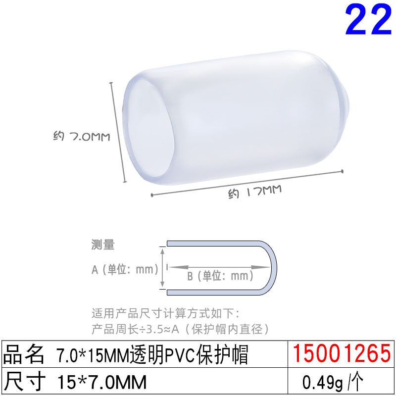 15001265# 7.0x17mm transparent pvc protective cap