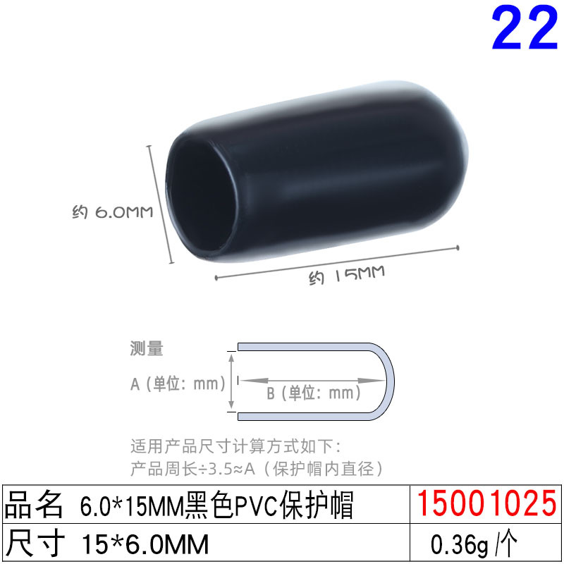 15000625#4. 0x15mm black pvc protective cap
