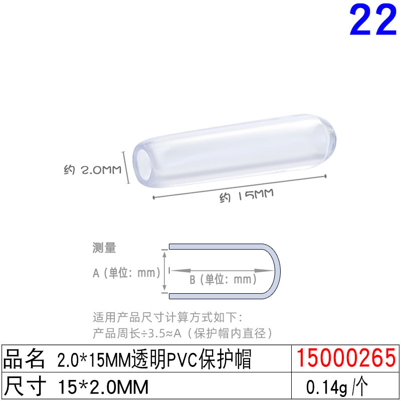 15000265# 2.0x15mm transparent pvc protective cap
