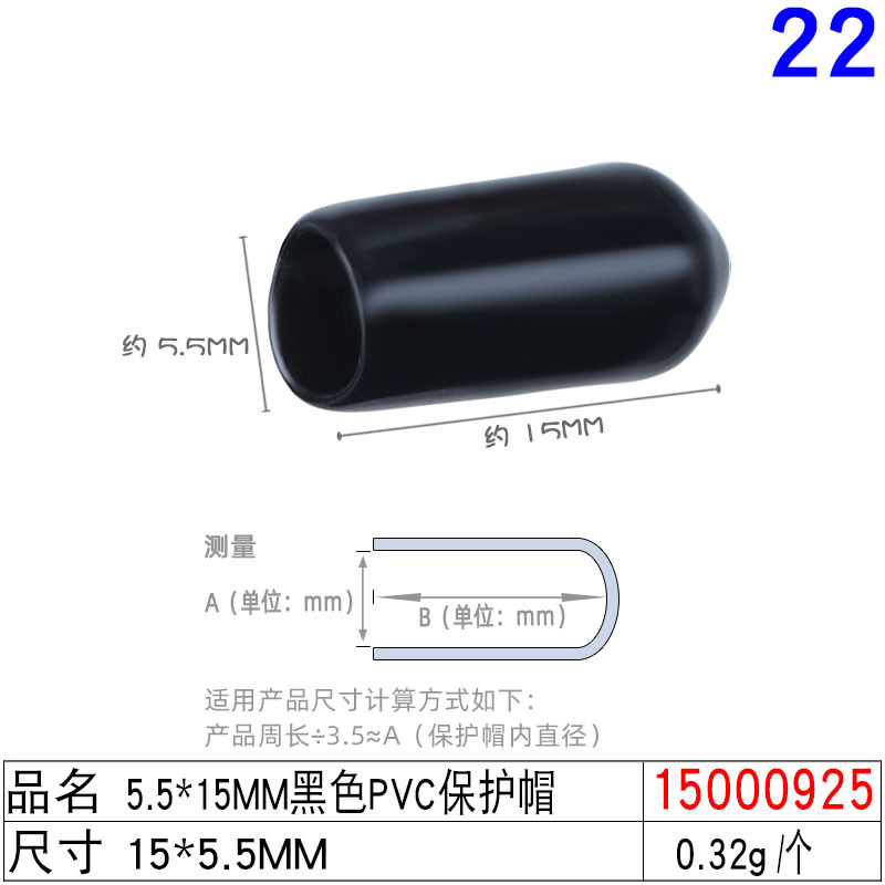 15000925#5. 5x15mm black pvc protective cap