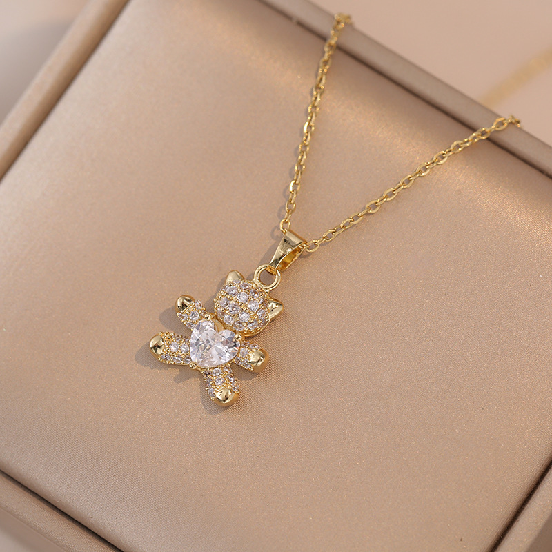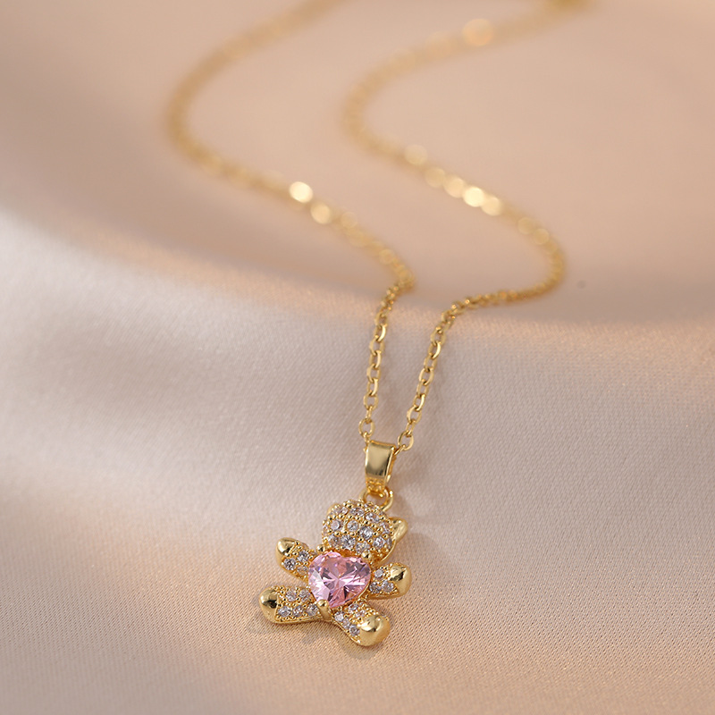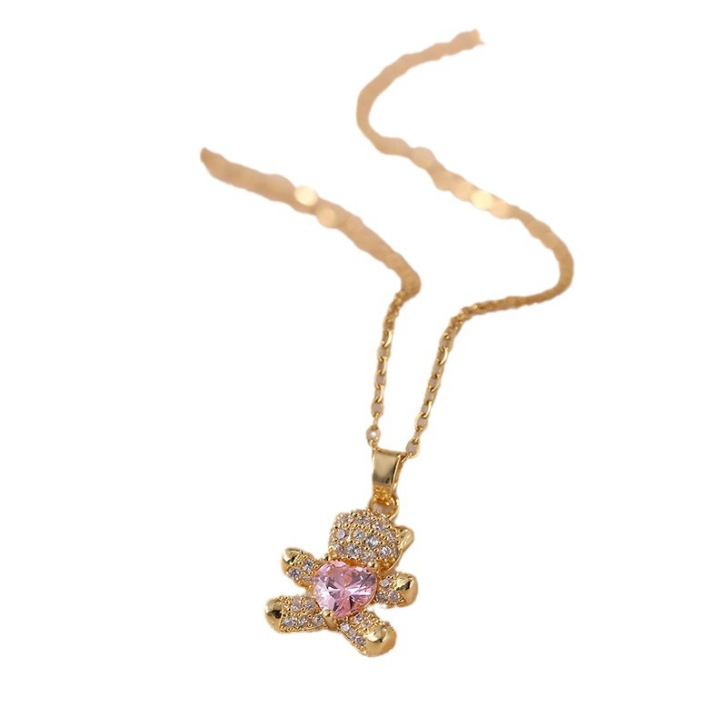 x0926 pink bear 22 necklace {pendant together}