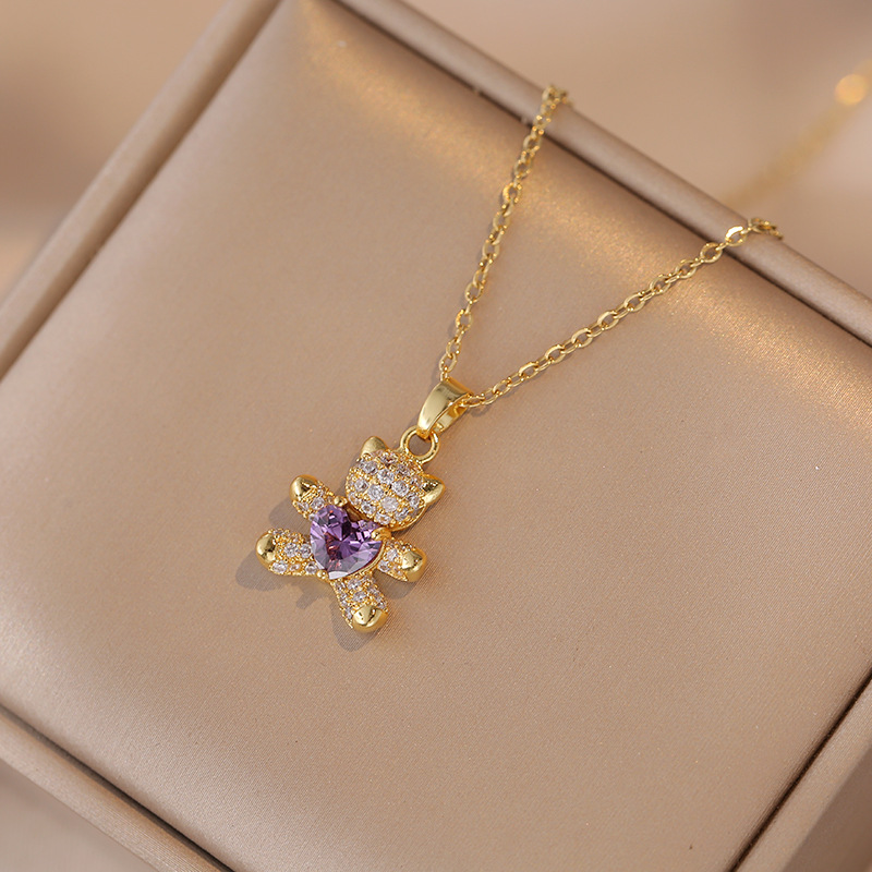 x0926 purple bear 33 necklace {pendant together}