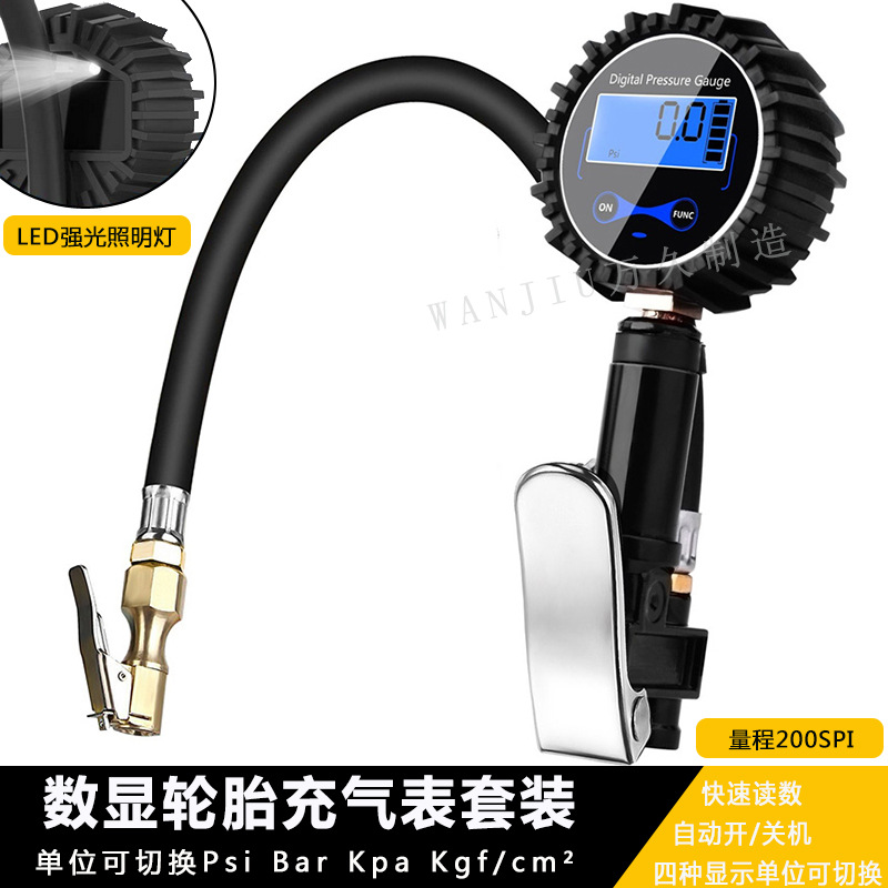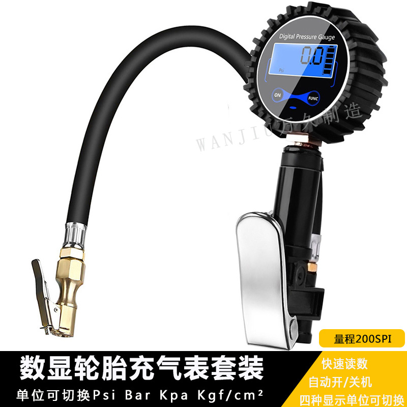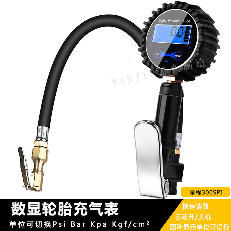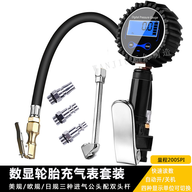 digital display inflating meter with three air intake heads 300psi double-headed rod