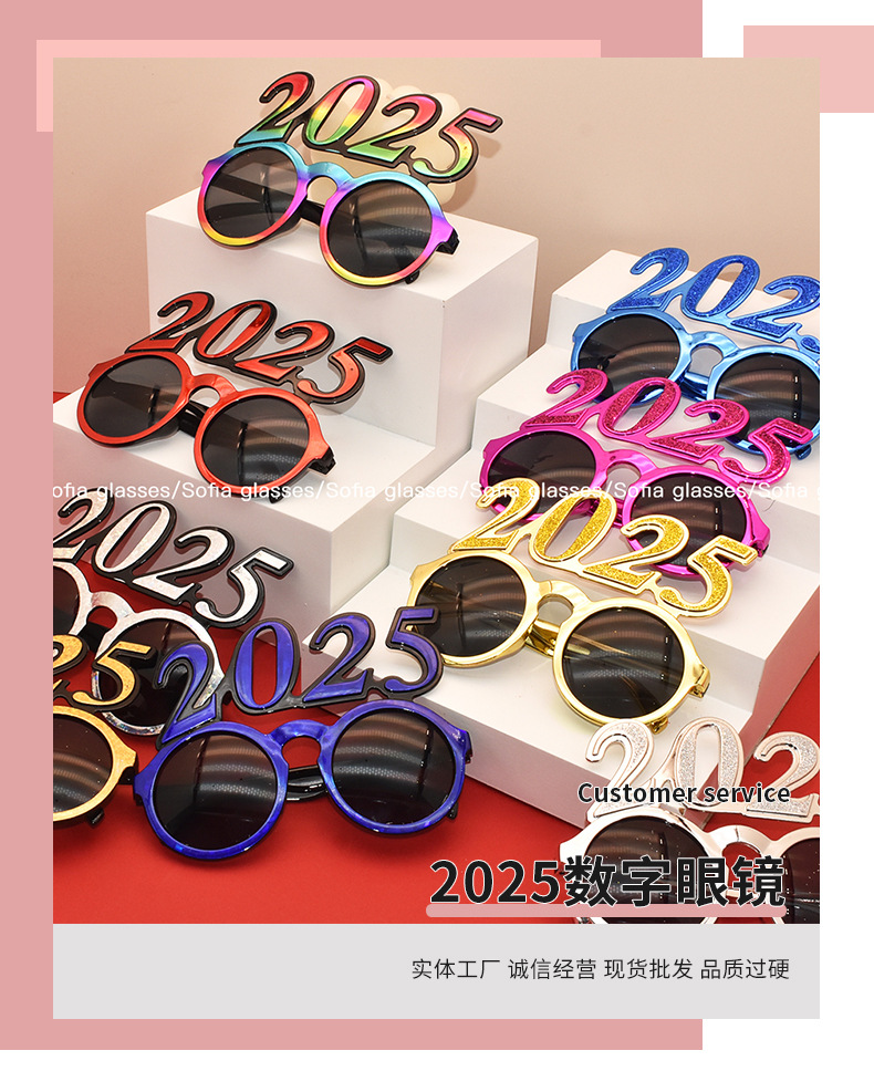 2025 Digital Gsses Electropting Four-Color Cross-Border New Year New Year Decoration round Frame Gsses Digital Funny Sungsses