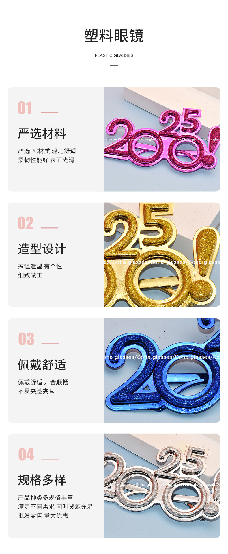2025 Number Gsses Excmation Point! New Year New Year Prop Decoration Gsses Party Funny Holiday Pstic Gsses