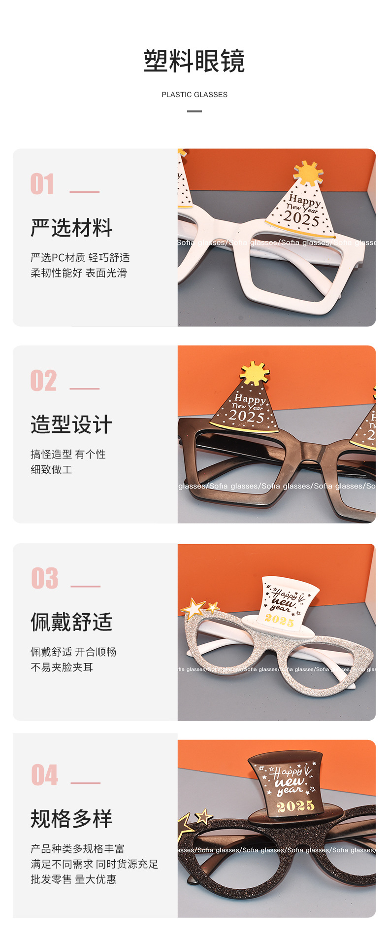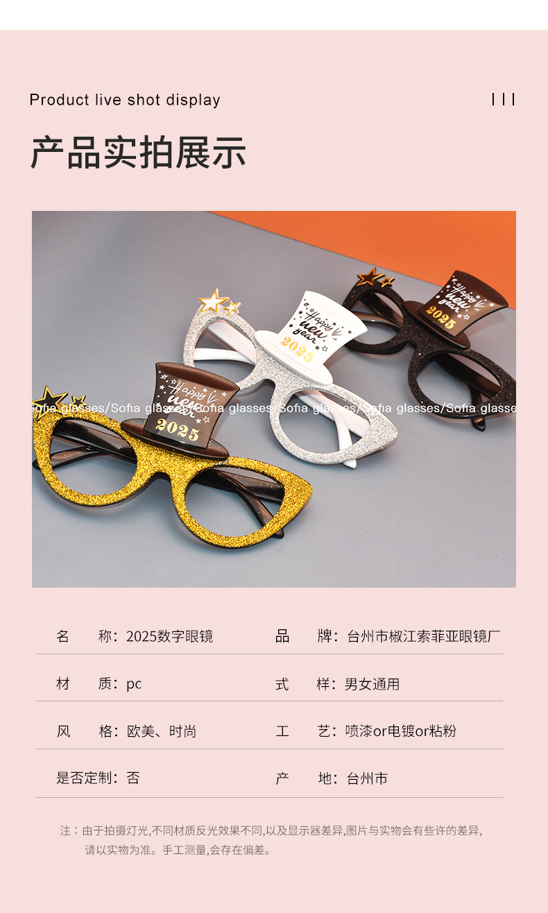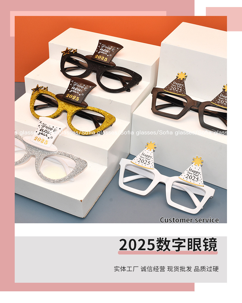 2025 New Year Digital Model Gsses Happy New Year English Hat Party Funny Ball Pstic Props Gsses