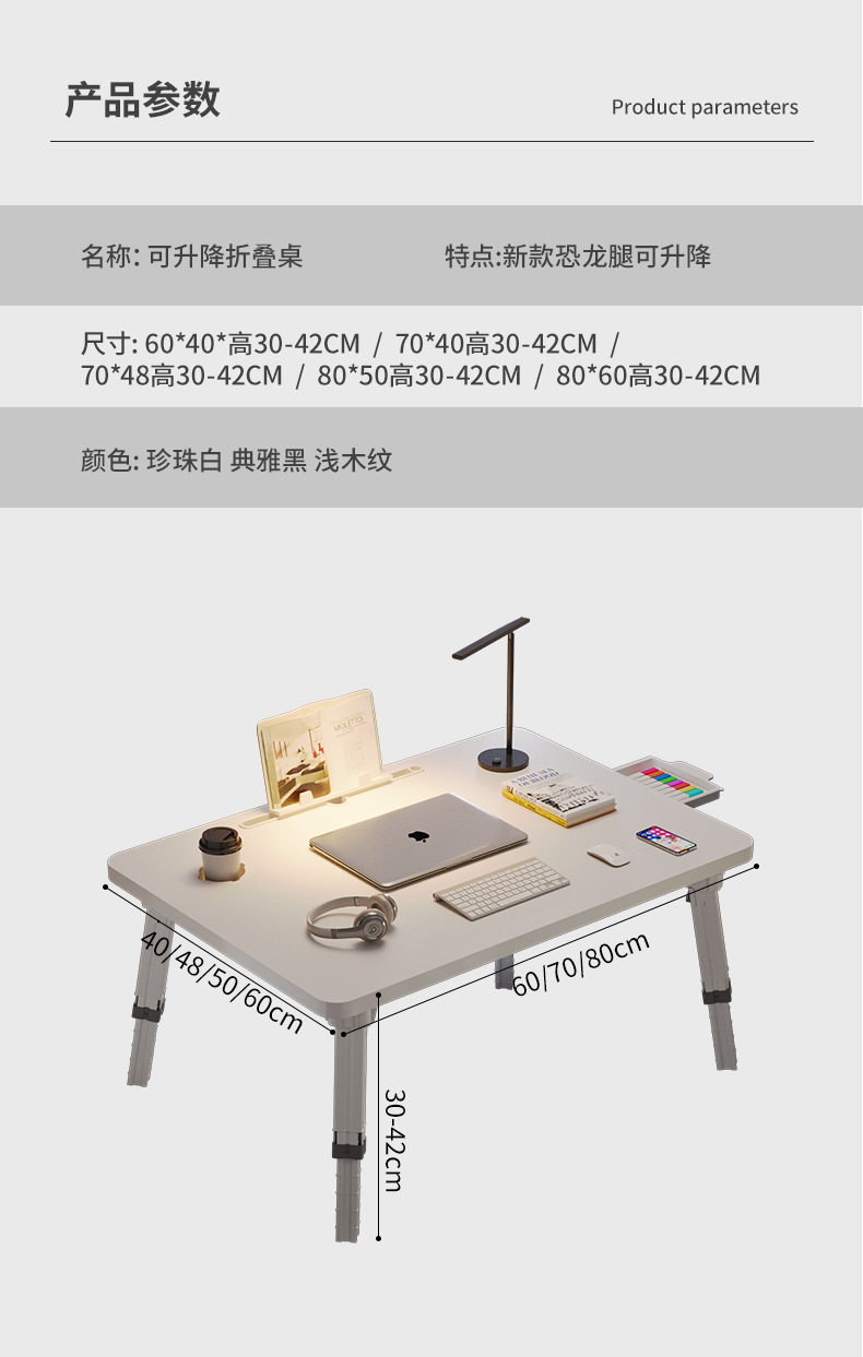 [extra large light wood grain white four-gear lifting] 70*48*42 flat