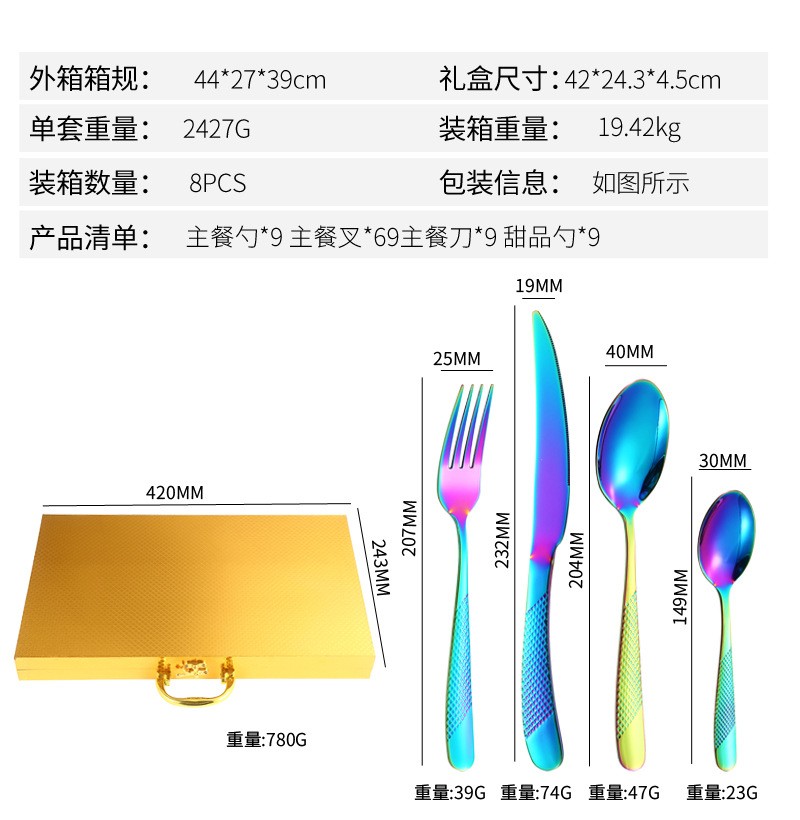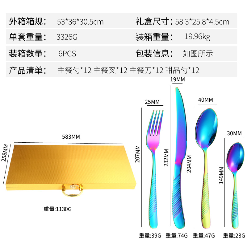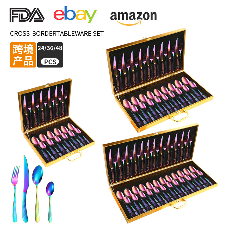 Cross-Border Amazon Star Diamond Stainless Steel Western Tableware 24-Piece Set Knife, Fork and Spoon Four Main Pieces