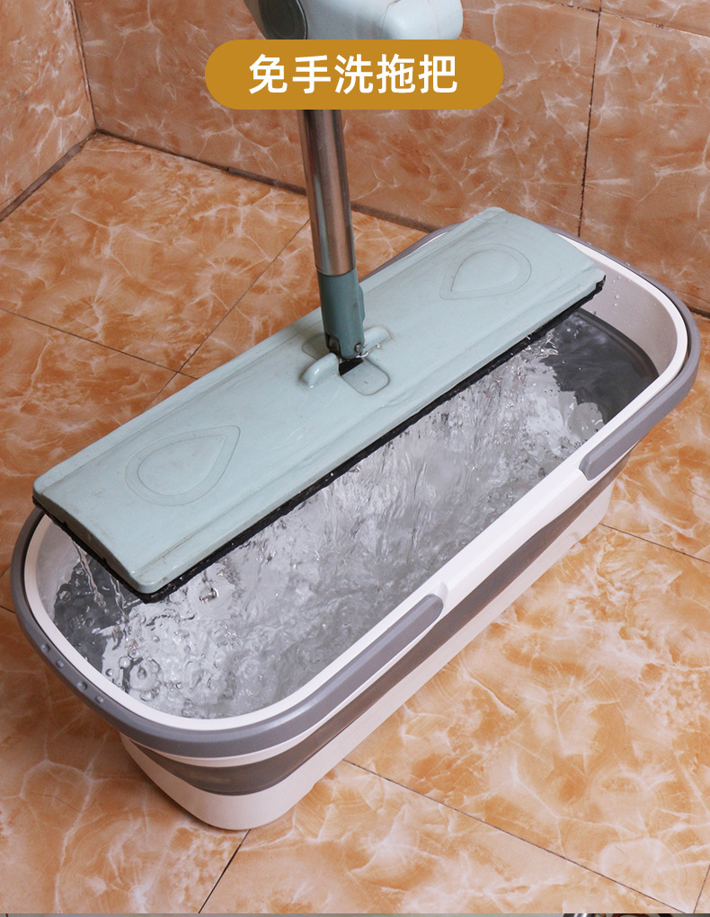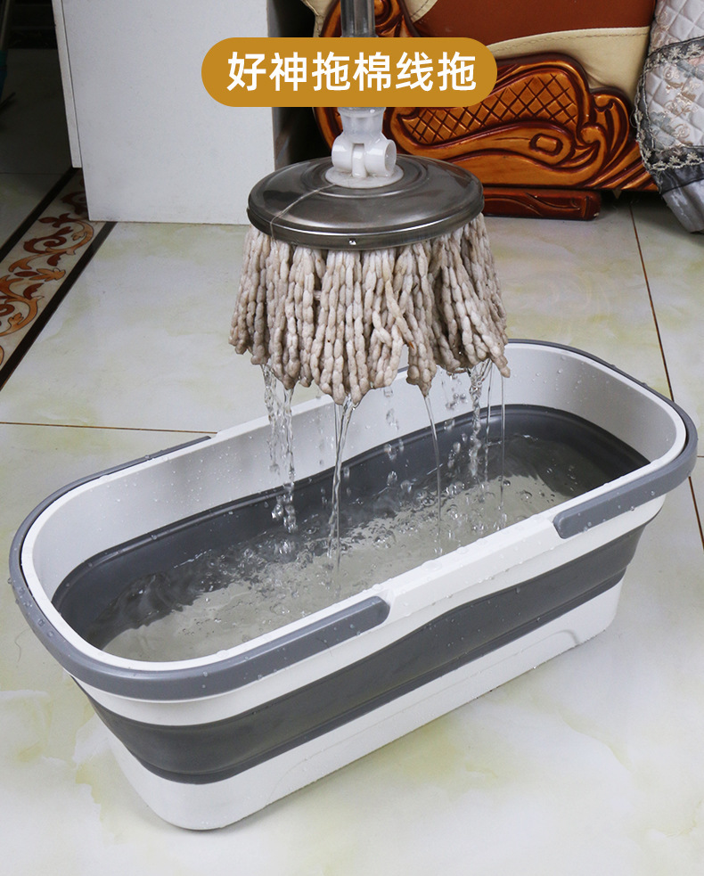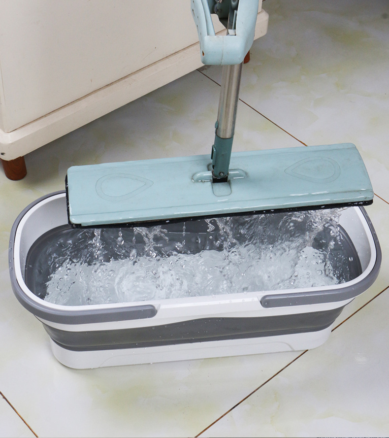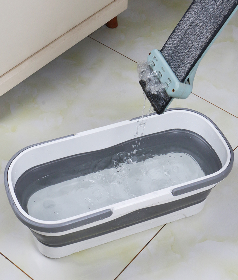gray white-folded mop bucket