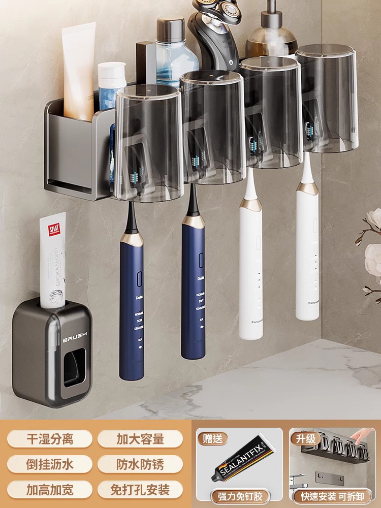 [four-person style❤special package] four-person toothbrush holder +4 gargle cup + toothpaste dispenser
