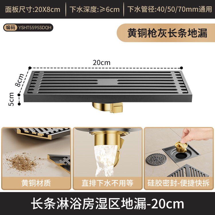 [gun gray] long invisible floor drain 20cm