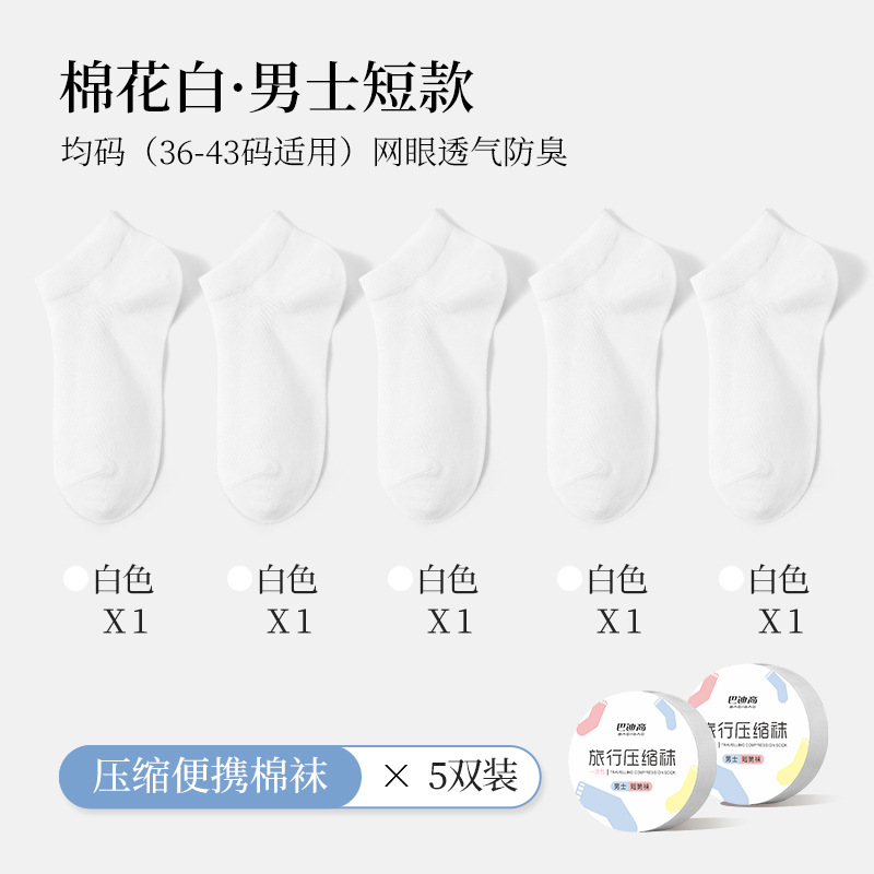 men's [compressed short socks cotton white] 5 pairs