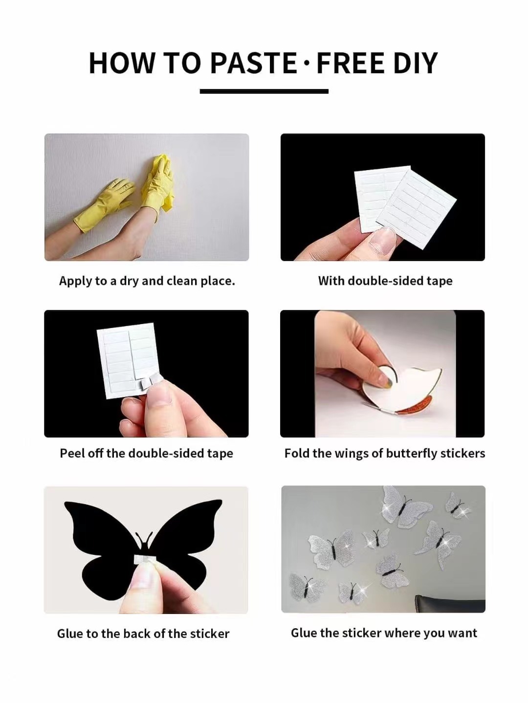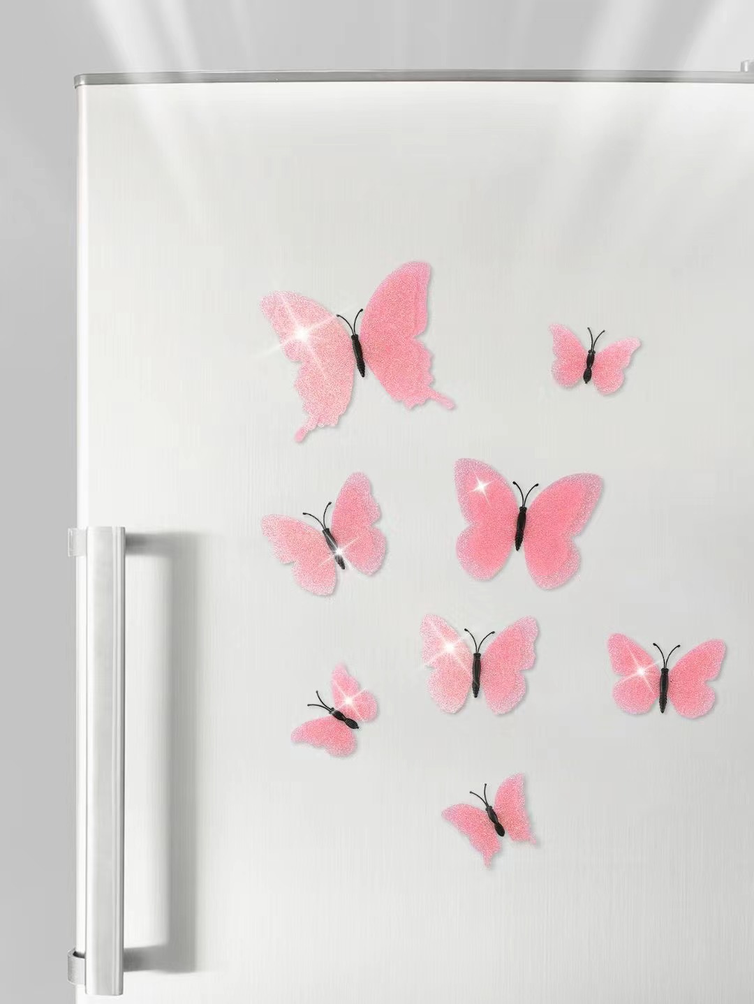 Note: Each butterfly has a magnet at the back that can be attached to places with magnets. Additionally, each butterfly has adhesive on the back, which can be used to stick to smooth, non-porous surfaces such as walls and glass for decorative purposes.