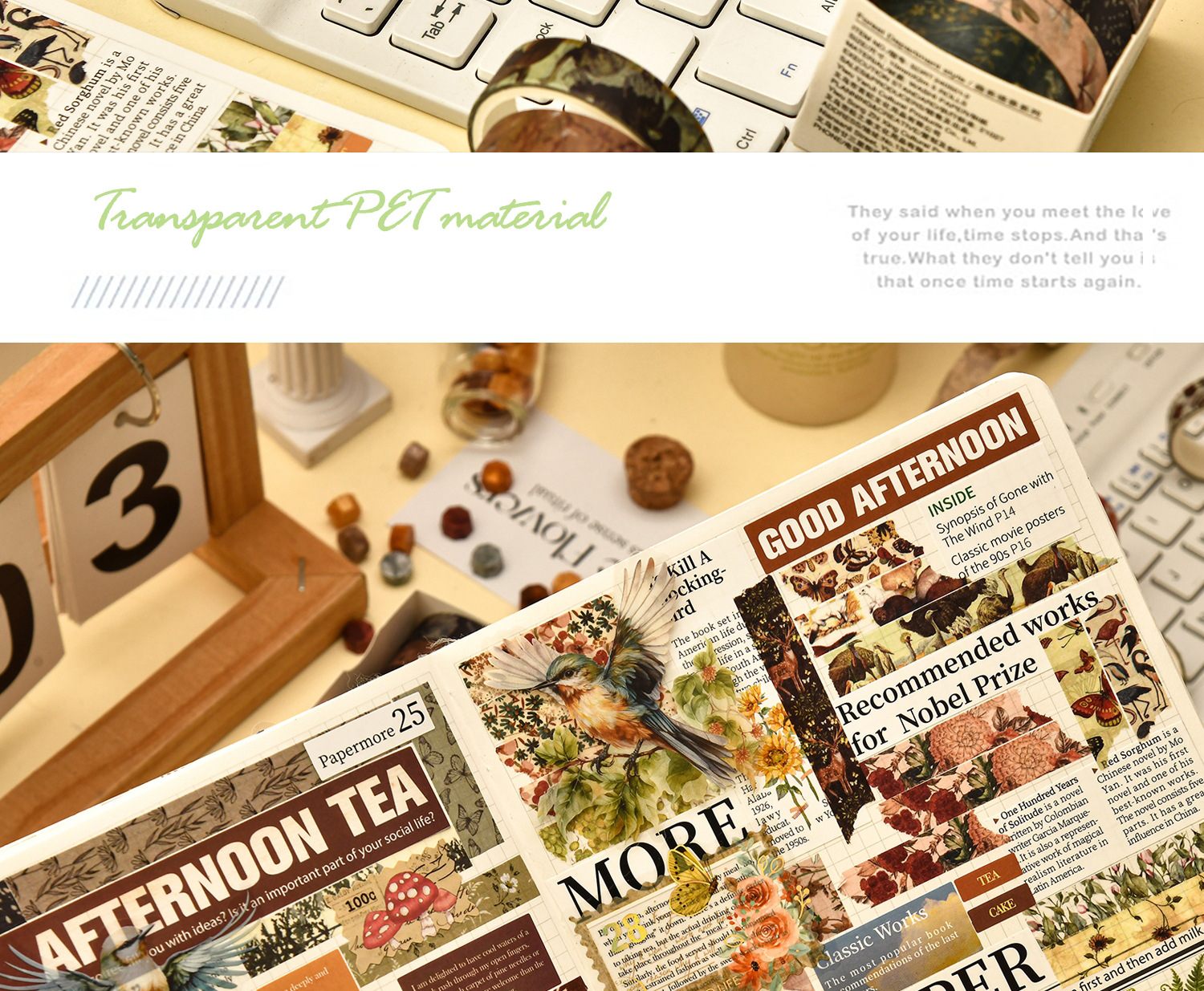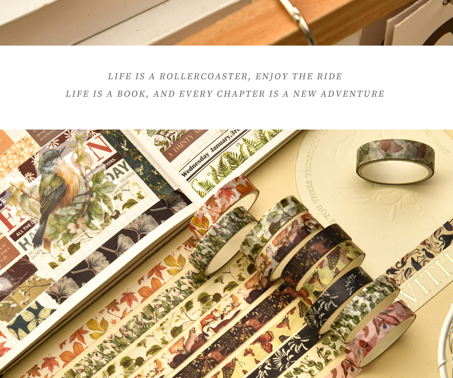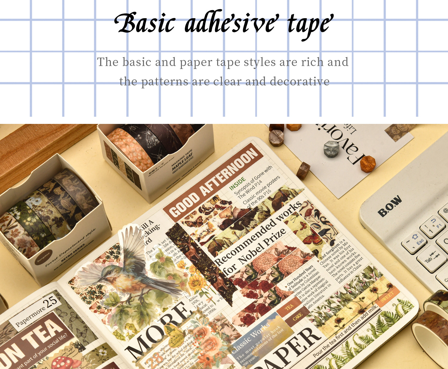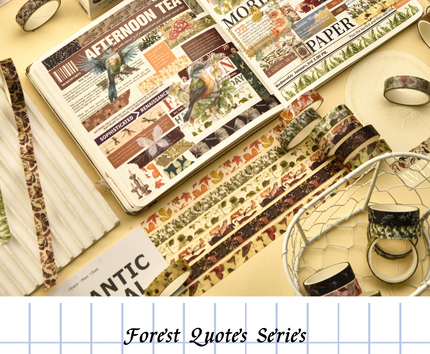 Mori Style Quotation Series and Paper Adhesive Tape Basic Diary Journal Tape Material DIY Decorative Stiers Paper Adhesive Tape