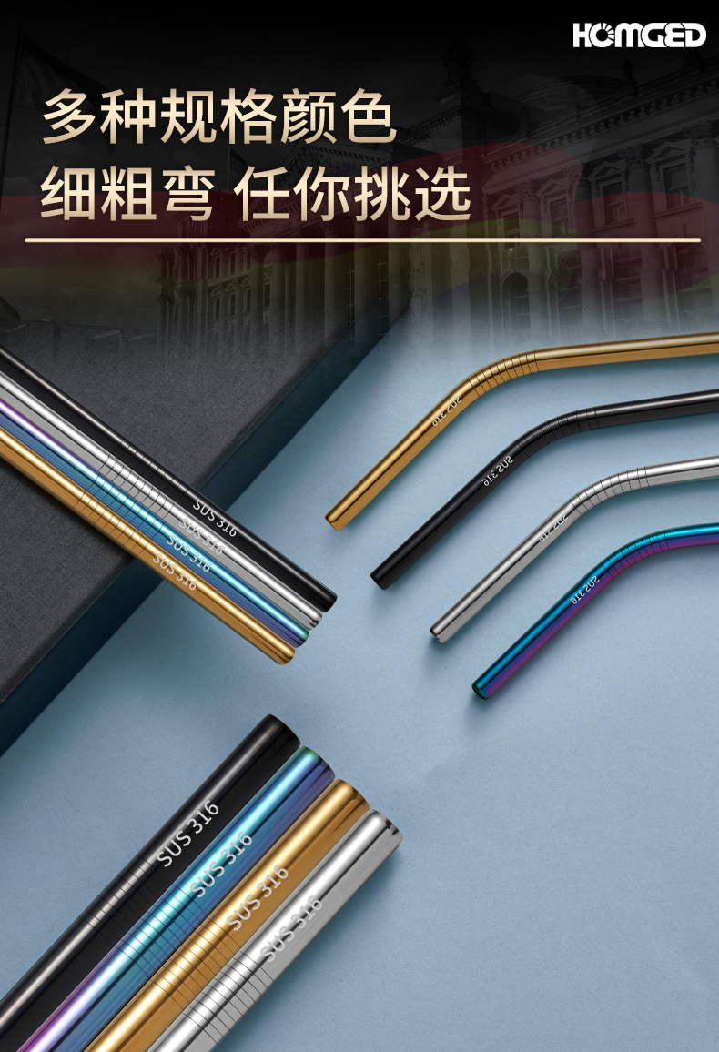 316 thin straight straw (black series) free brush) free brush