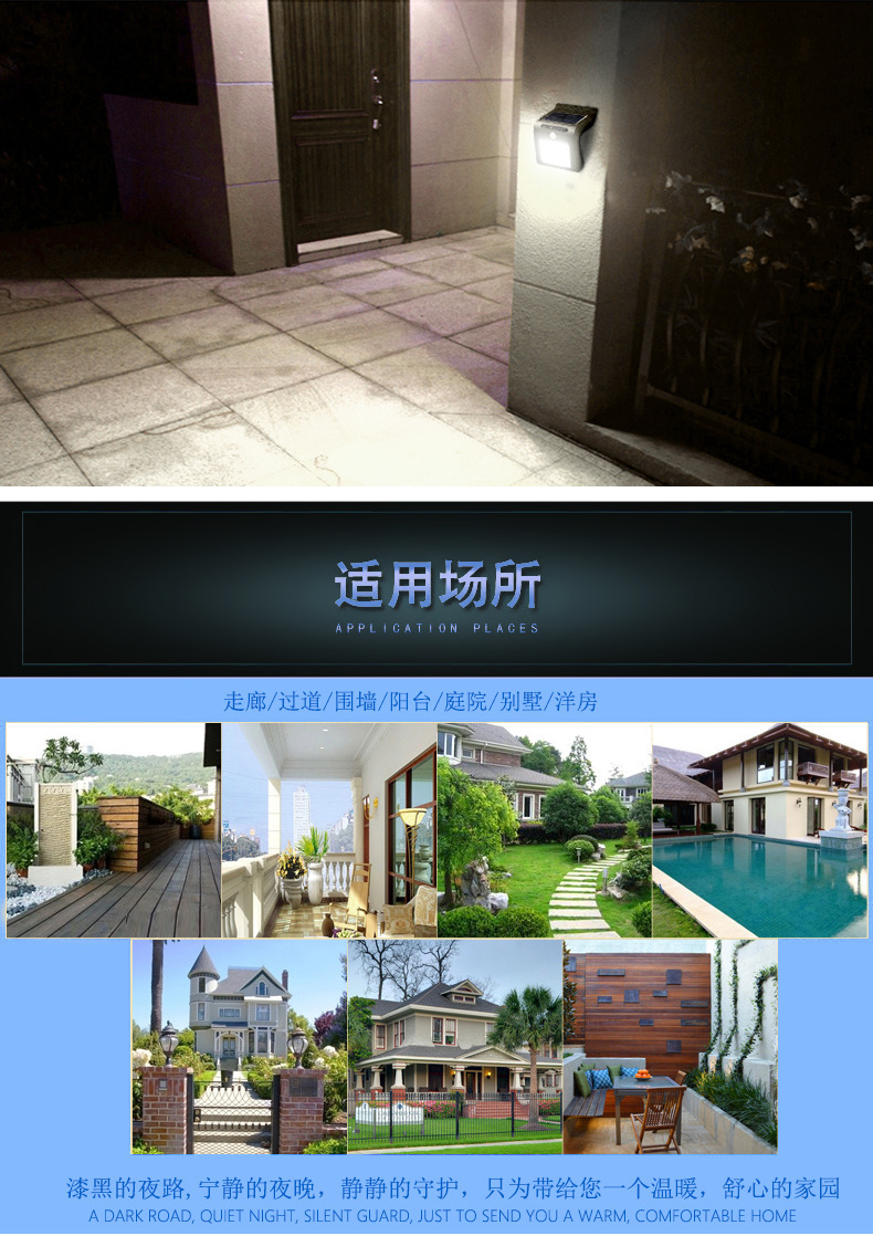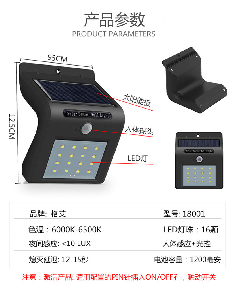 4.Induction WorkPattern: WhenWhen the surrounding environment is relatively dark, SomeoneClose to the light3-5 meter sensing rangeIt will trigger the light to turn on.