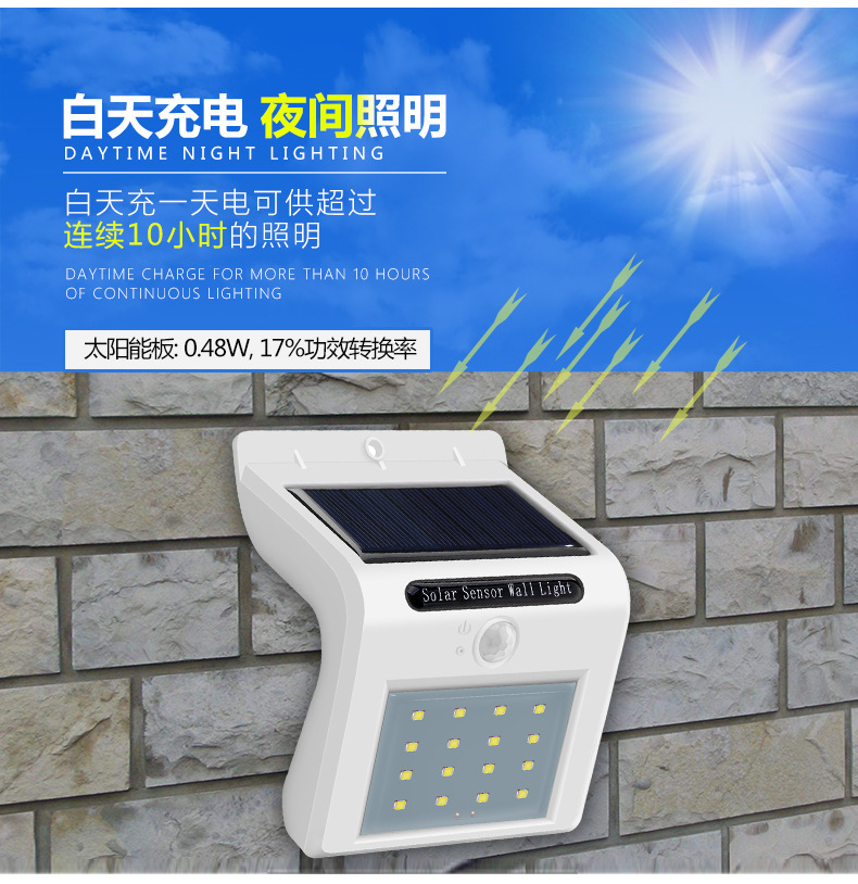 Charge and store electricity during the day, illuminate at night.