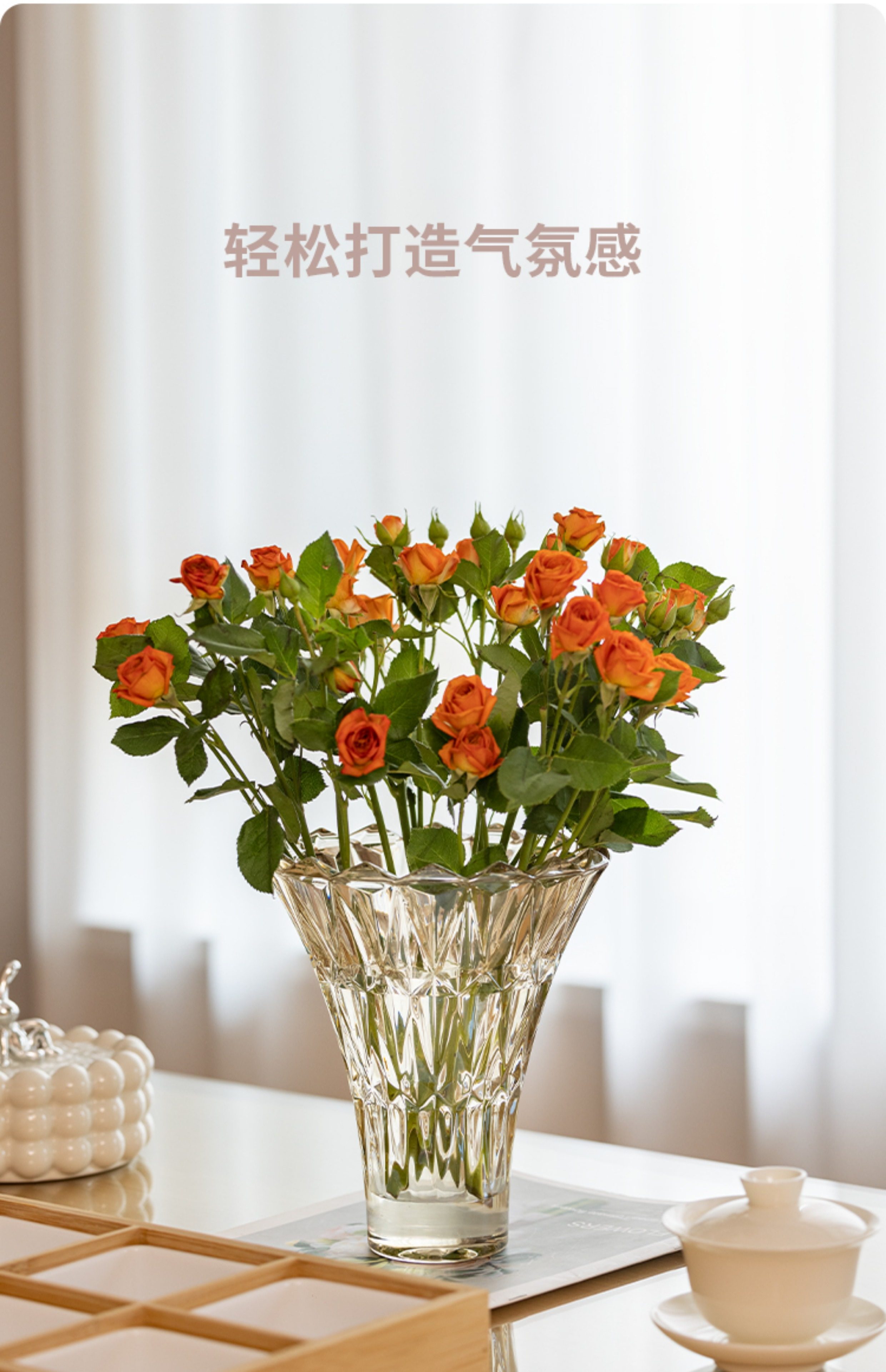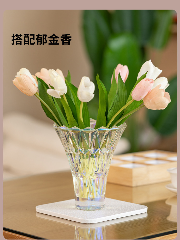 vase decoration living room flower arrangement flowers rose tulip light luxury high-grade glass transparent hydroponic crystal flower device
