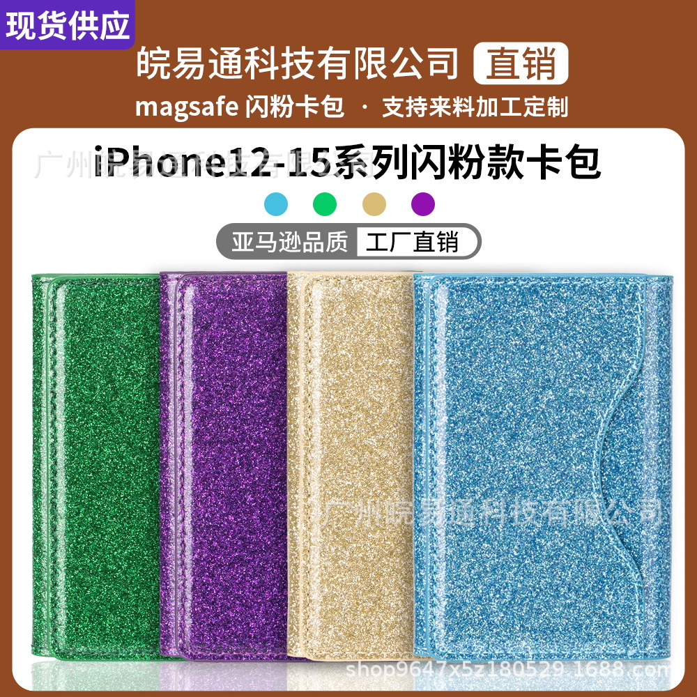 Applicable to Apple 15 Mobile Phone Ba Stier Card Holder MagSafe Magnetic Leather Glitter Card Holder iPhone Mobile Phone Holder