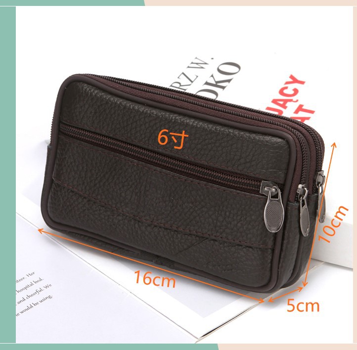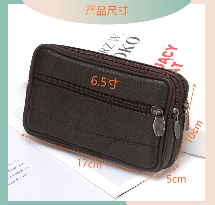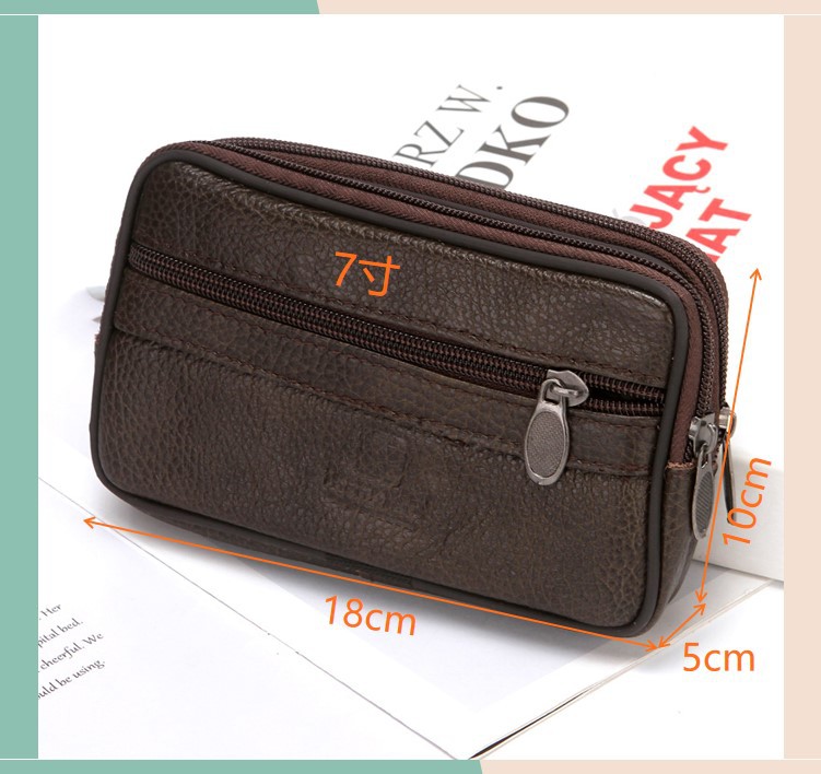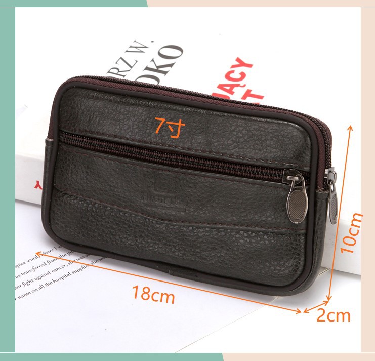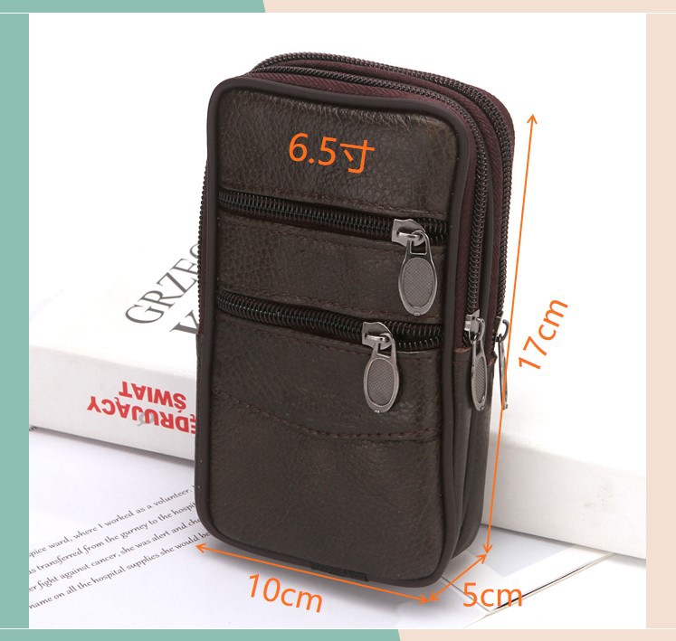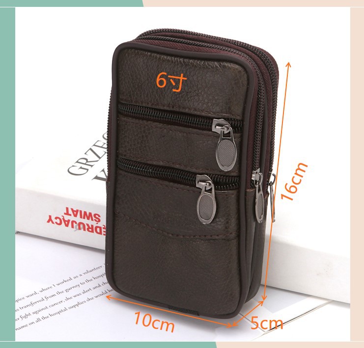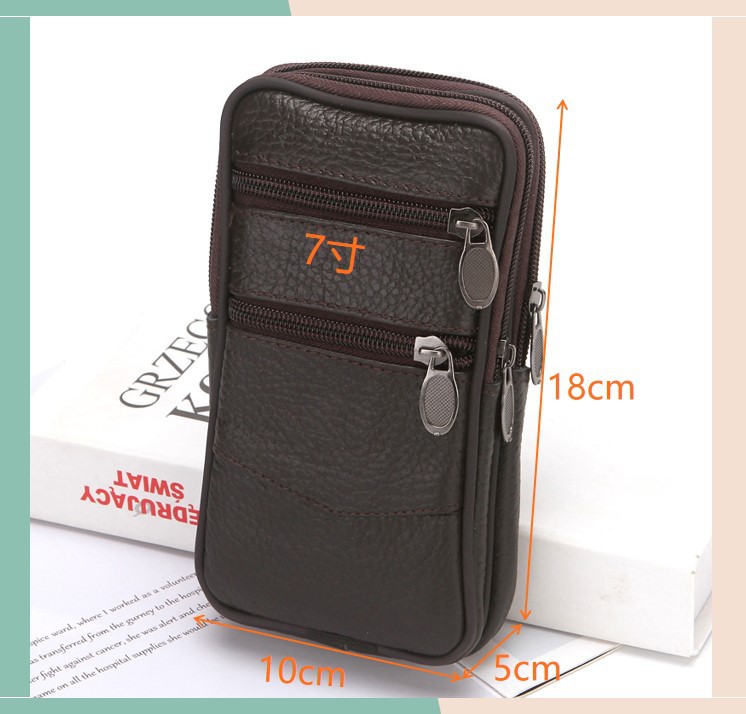 New Men's Authentic Leather Belt Mobile Phone Waist Bag Elderly Construction Site Work Leather Phone Bag Belt Bag Wholesale