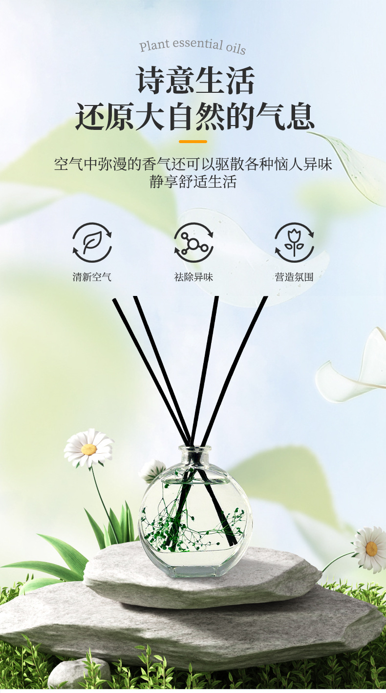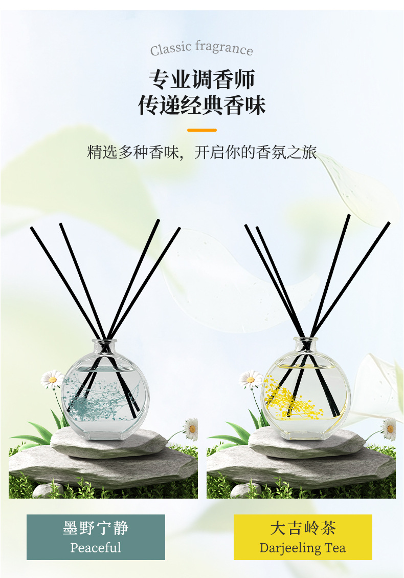 household bedroom fire-free aromatherapy 80ml toilet deodorant reed diffuser essential oil hotel air fresh aroma sticks
