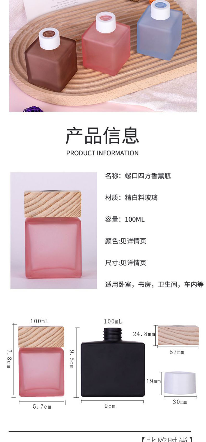 square glass fire-free aromatherapy bottles 100ml fire extinguisher bottles home ornaments car fragrance expanding perfume essential oil sub-bottle