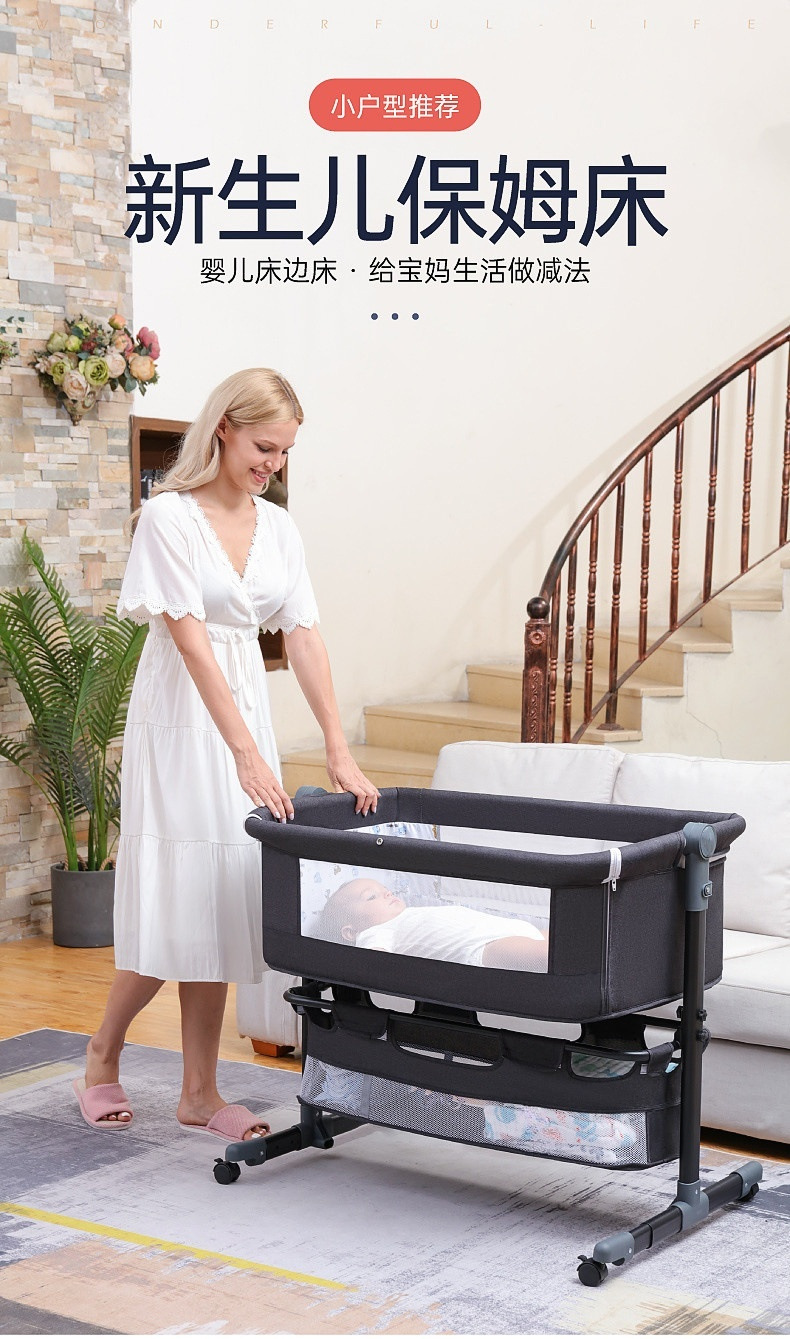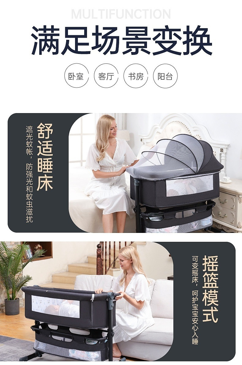 light gray + mosquito net + mattress + storage basket + diaper-changing table