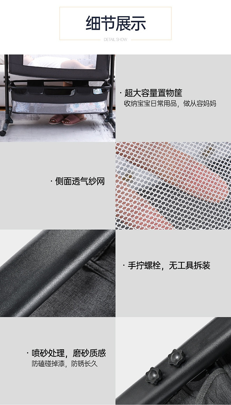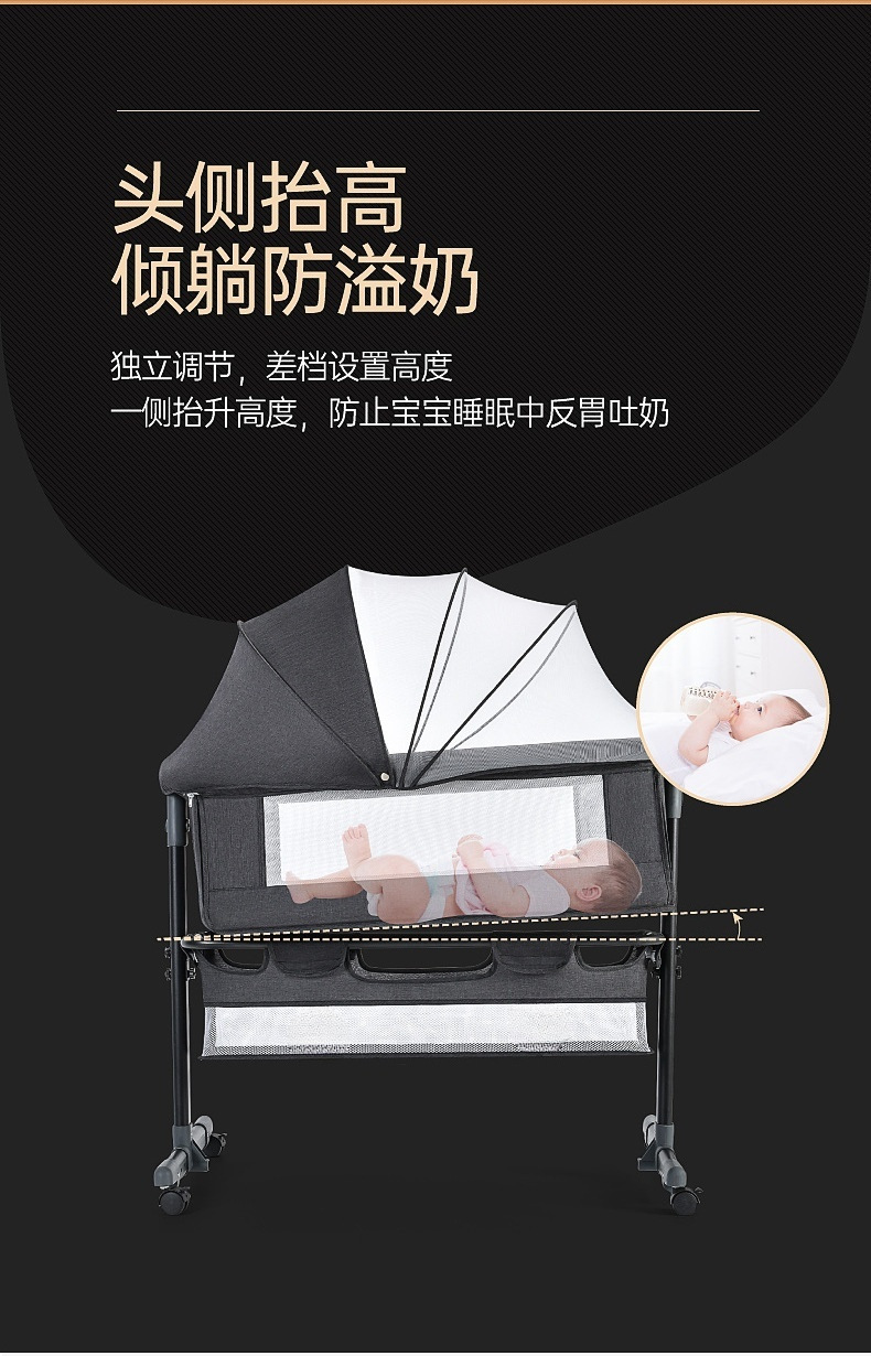 dark gray + mosquito net + mattress + storage basket + diaper-changing table