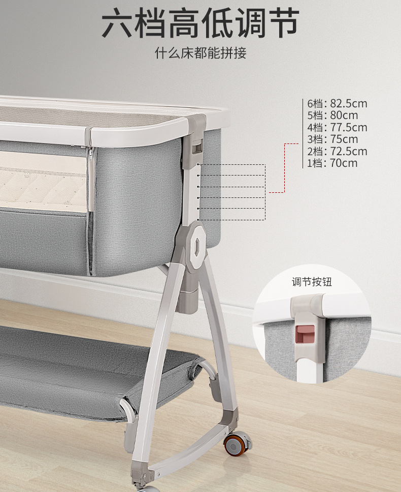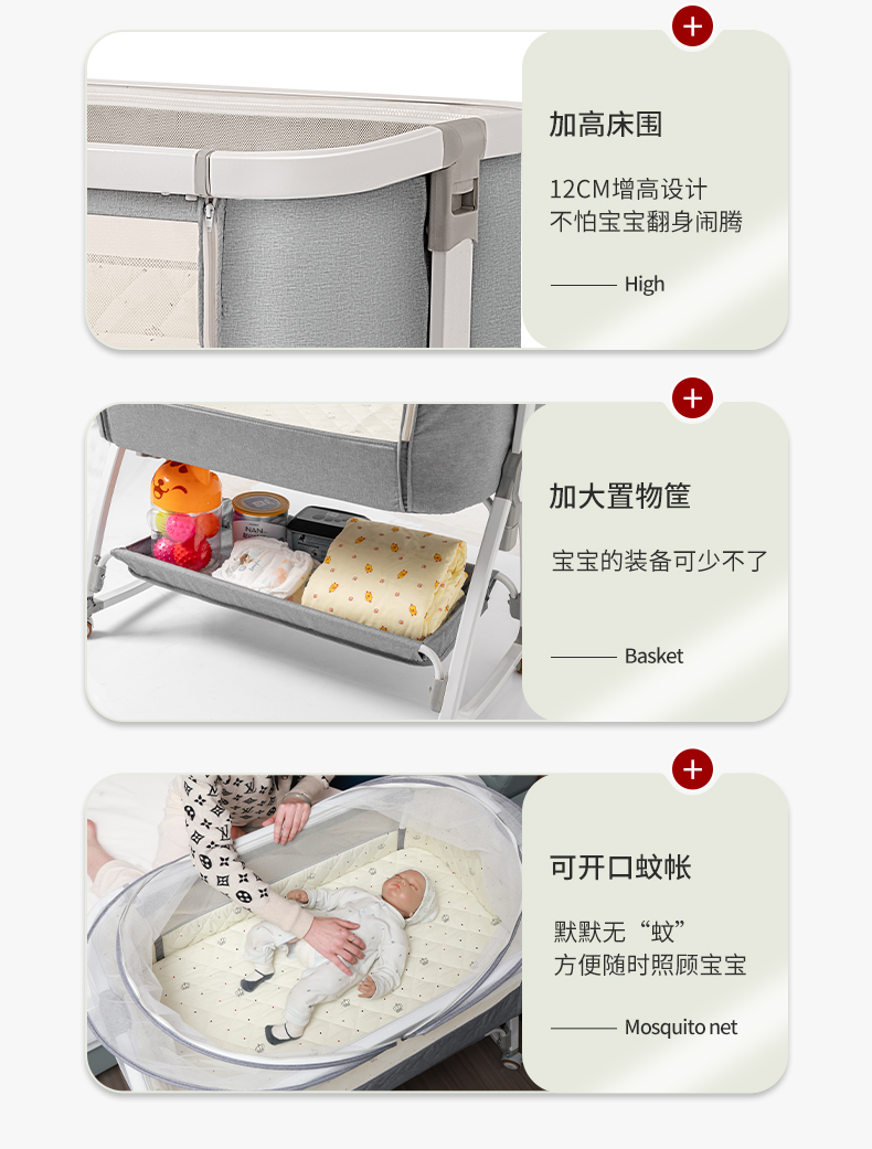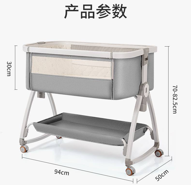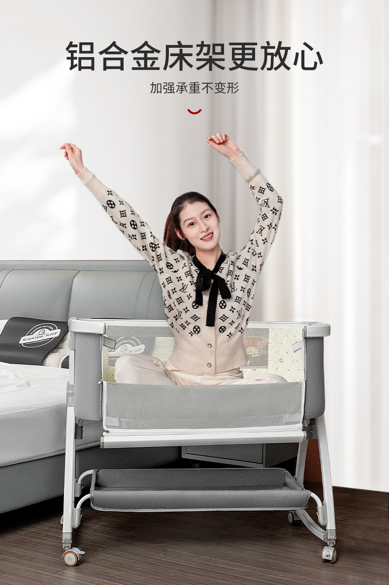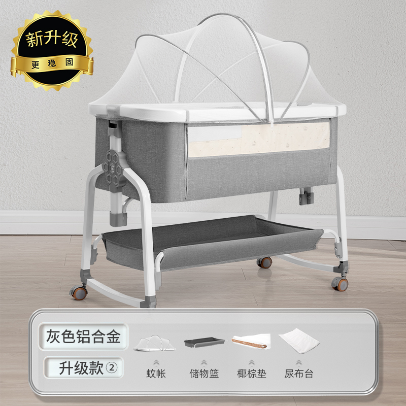 [a new upgrade is more stable] monin gray aluminum alloy-bed + mosquito net + storage basket + coir mattress + bed fence + diaper-changing table