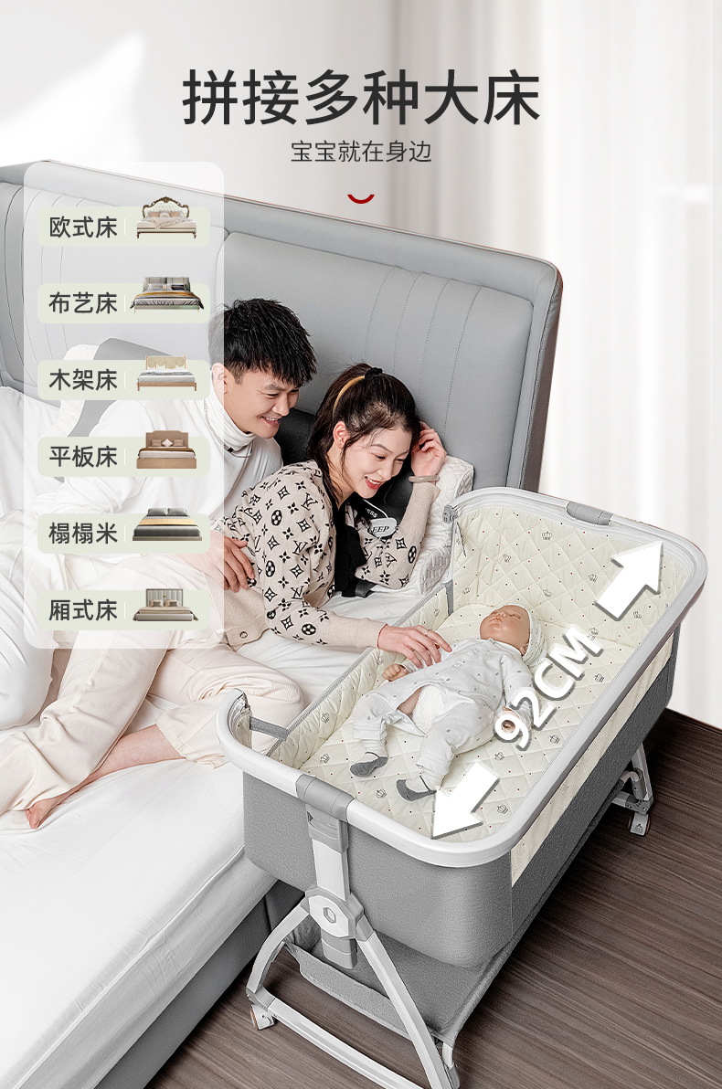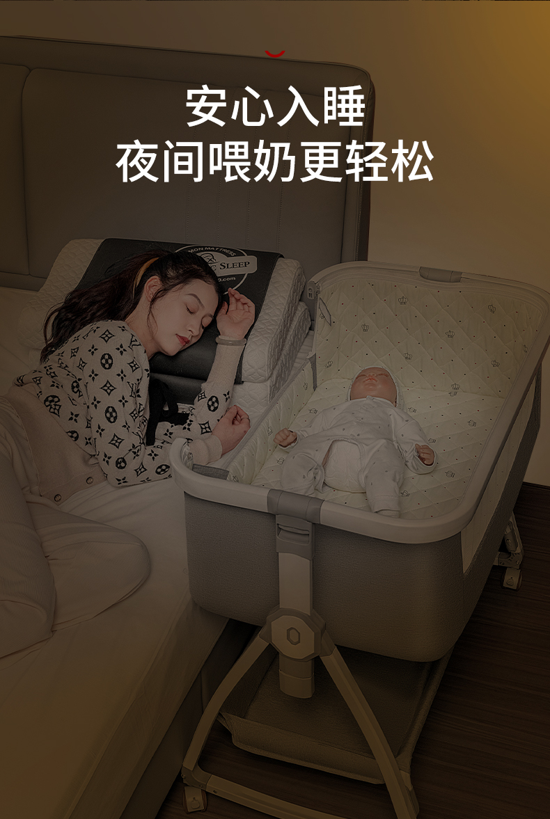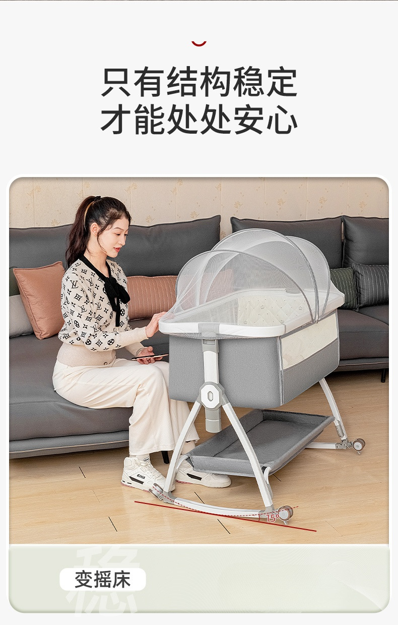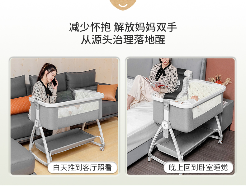 [a new upgrade is more stable] monin gray aluminum alloy-bed + mosquito net + storage basket + coir mattress + bed fence + diaper-changing table