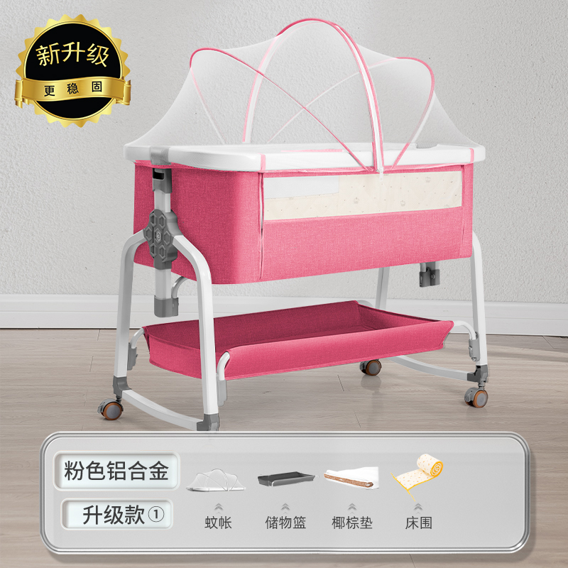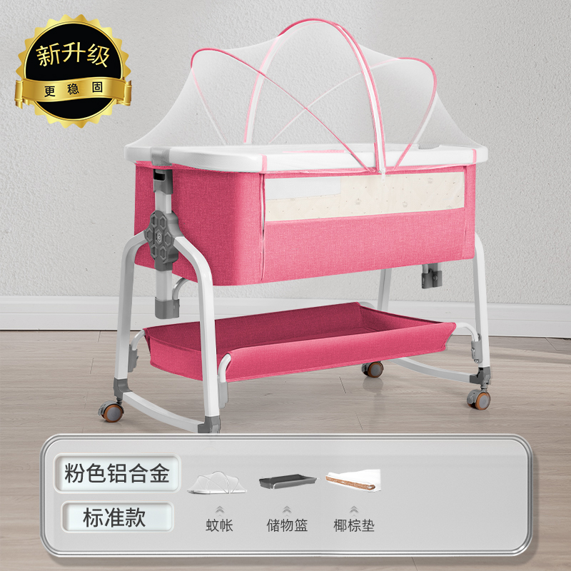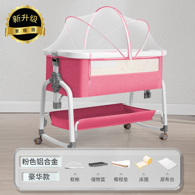 [a new upgrade is more stable] laisha pink aluminum alloy-bed + mosquito net + storage basket + coir mattress + diaper-changing table + bed fence