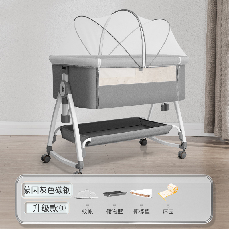 [a new upgrade is more stable] monin gray carbon steel-bed + mosquito net + storage basket + coir mattress + bed fence + diaper-changing table