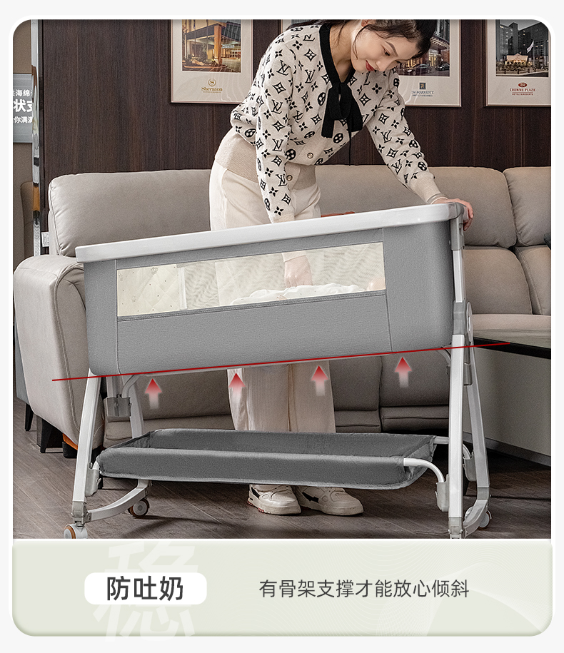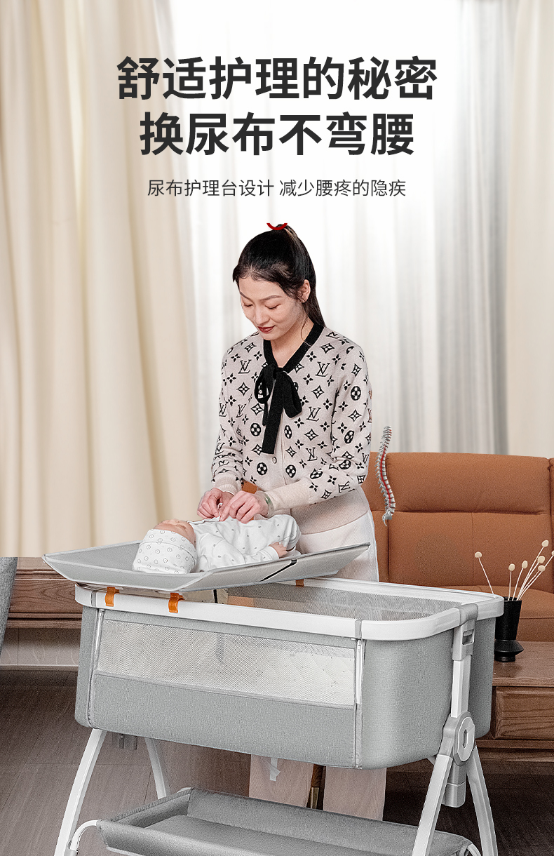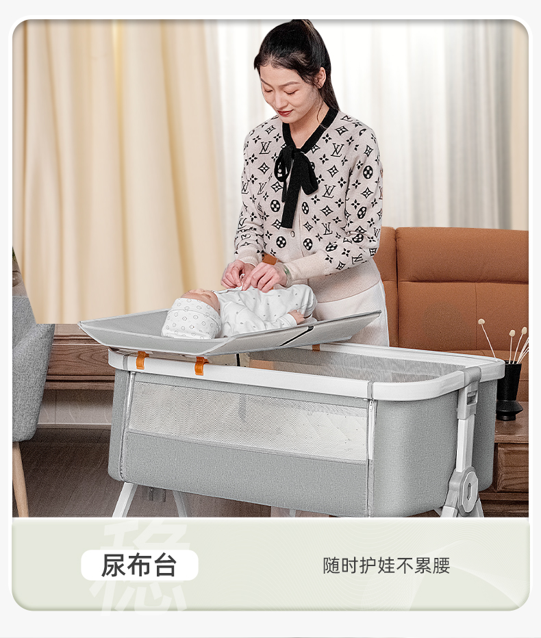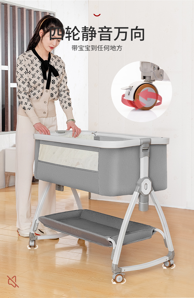 [a new upgrade is more stable] monin gray aluminum alloy-bed + mosquito net + storage basket + coir mattress + diaper-changing table