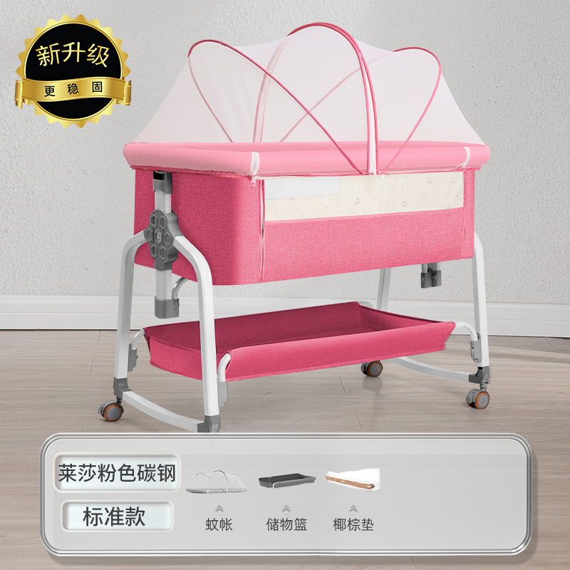[a new upgrade is more stable] laisha pink carbon steel-bed + mosquito net + storage basket + coir mattress + diaper-changing table