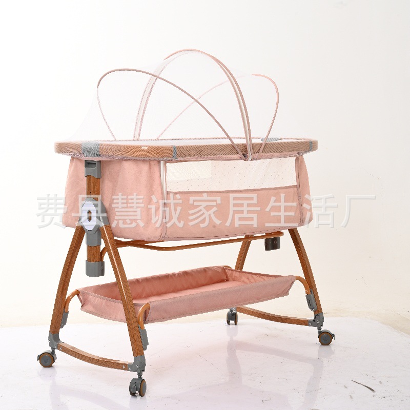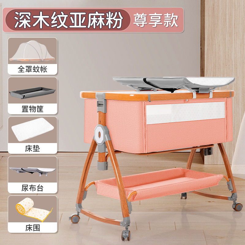 wood grain pink + bed fence + diaper-changing table