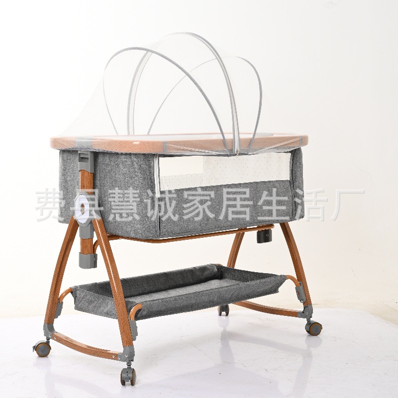 wood grain light gray + bed fence + diaper-changing table