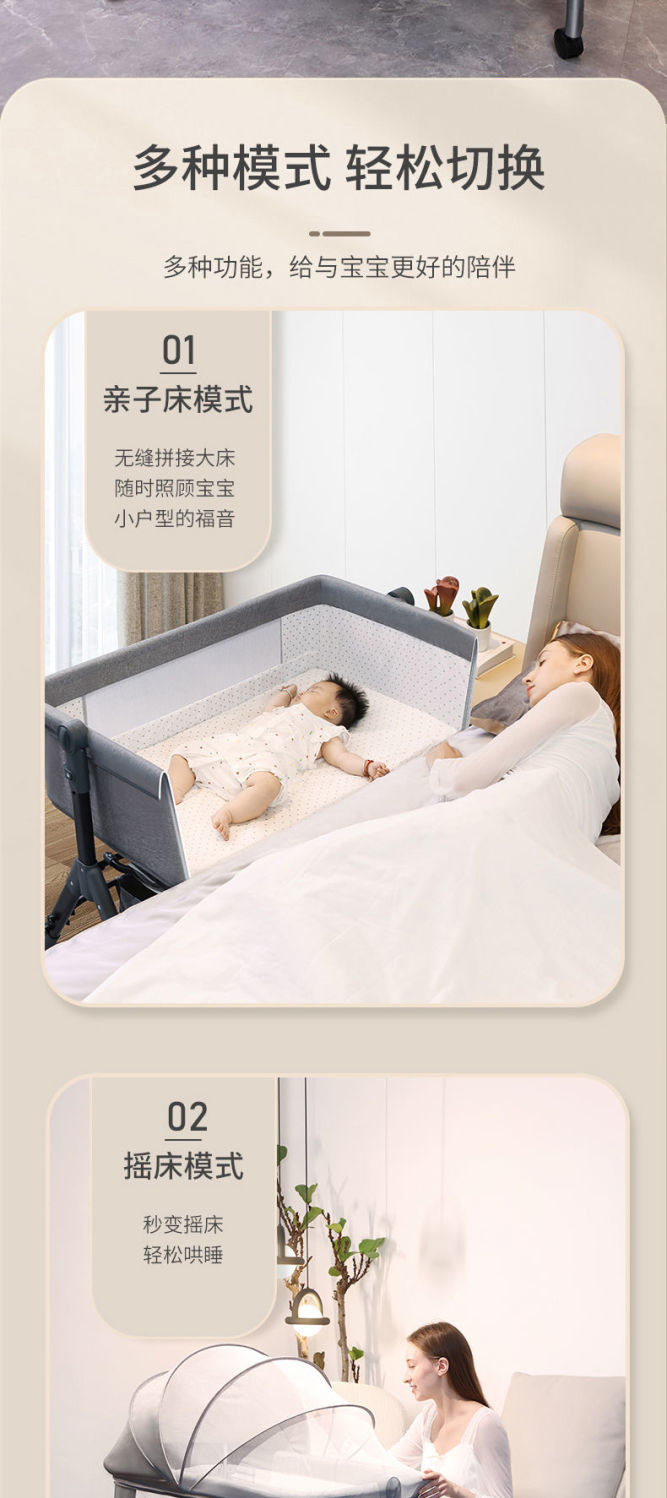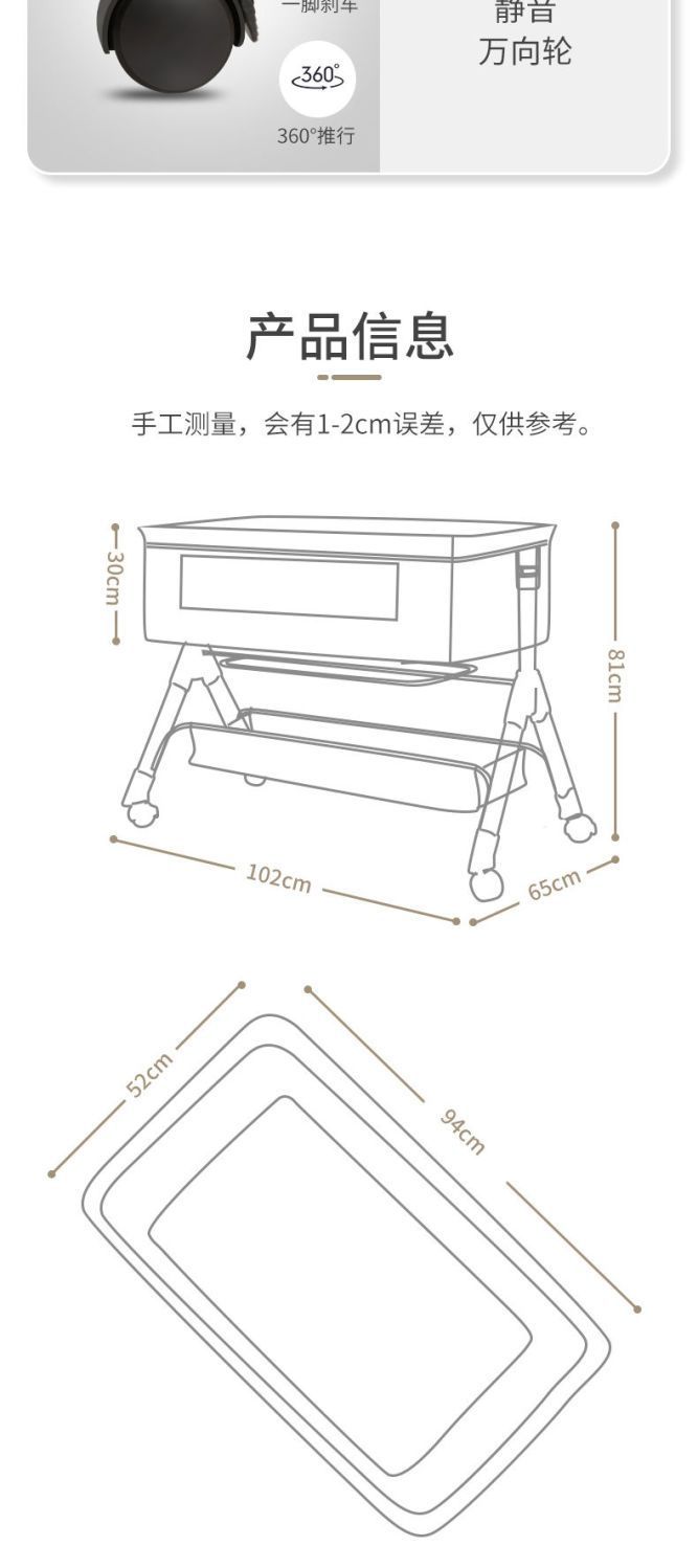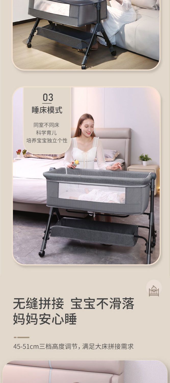 When using the product, ensure that a parent is present to supervise, to prevent the bed from sliding or tipping over due to the active movements of the baby, or any dangerous actions such as the baby climbing out. Those with a diaper changing station need to be supervised even more carefully.
