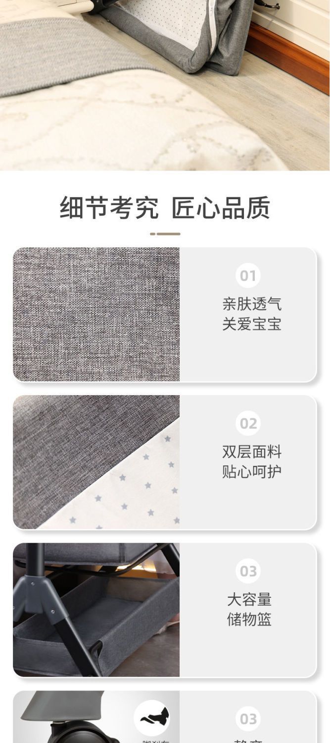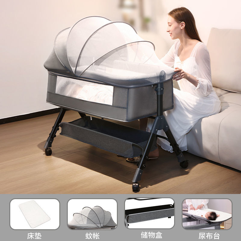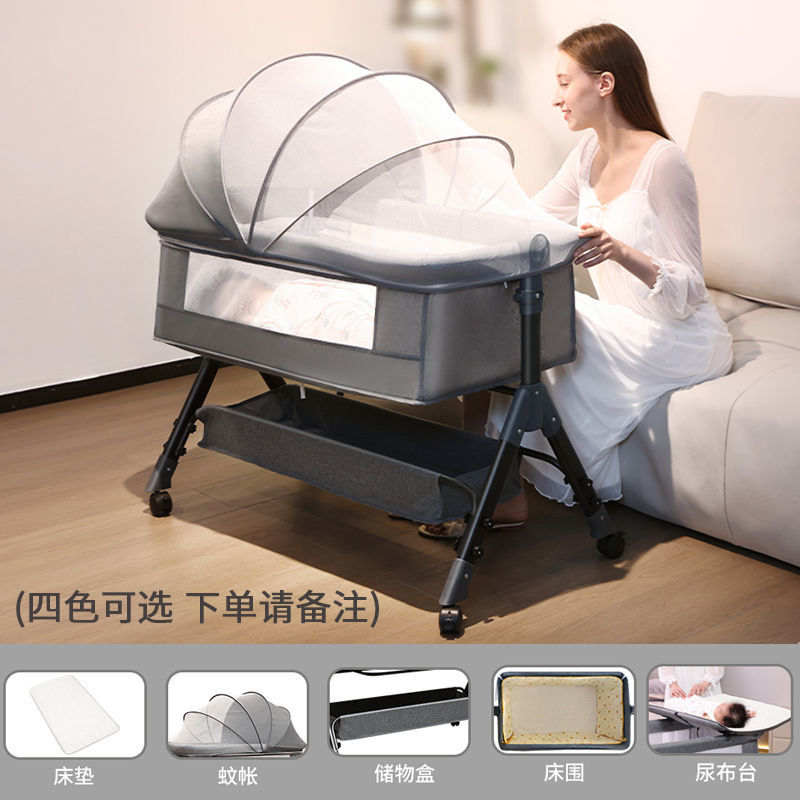 six-speed upgrade (cocoanut matting) light gray + diaper-changing table + bed fence