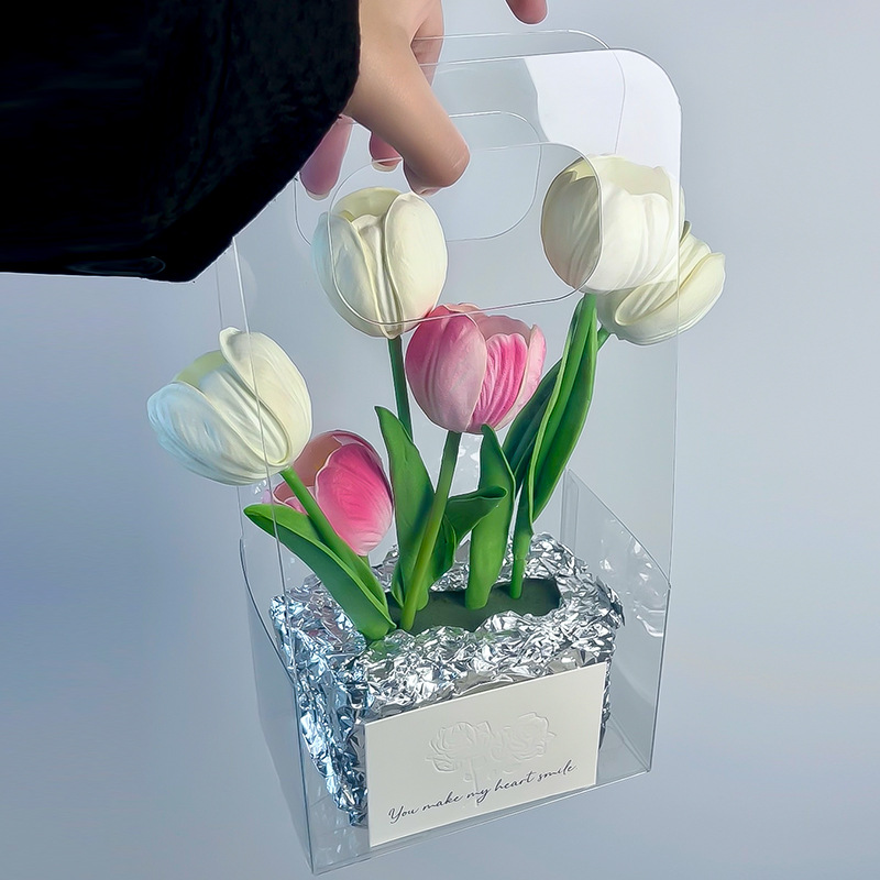 Bouquet Paaging Handbag 520 Flower Paaging Box Ins Style Gift Bag Transparent PVC Pstic Gift Box in Sto