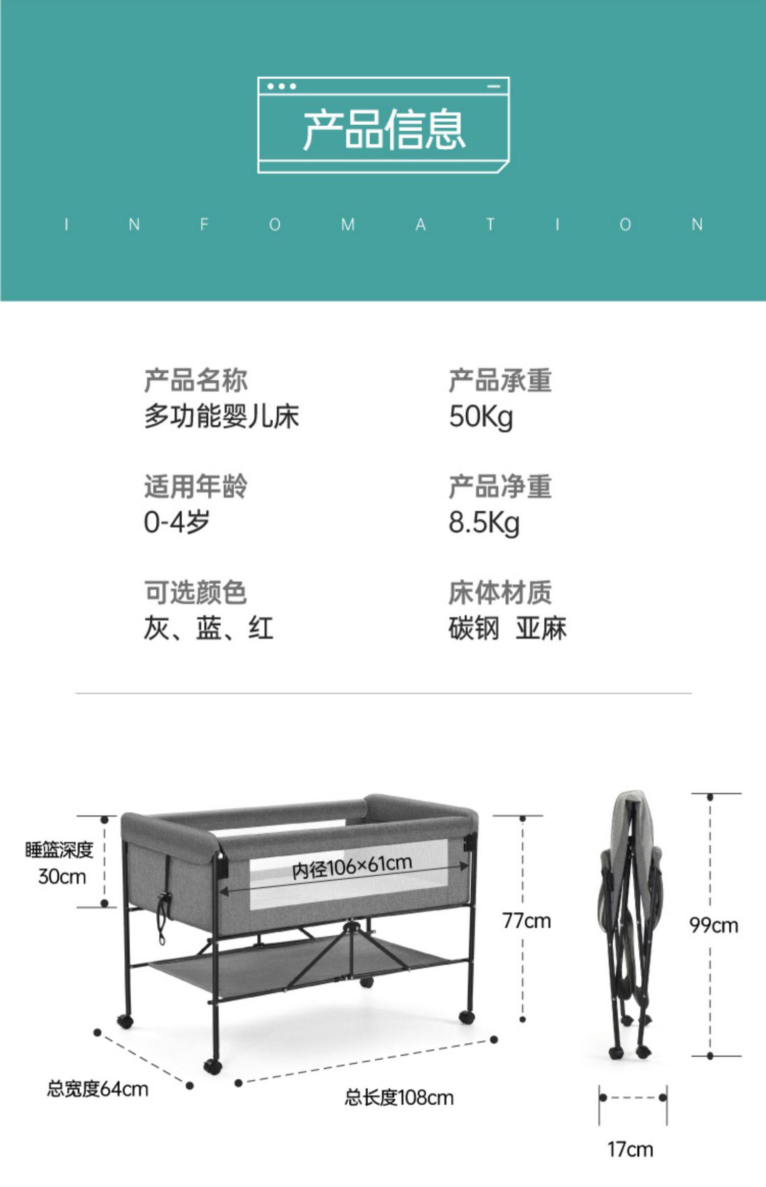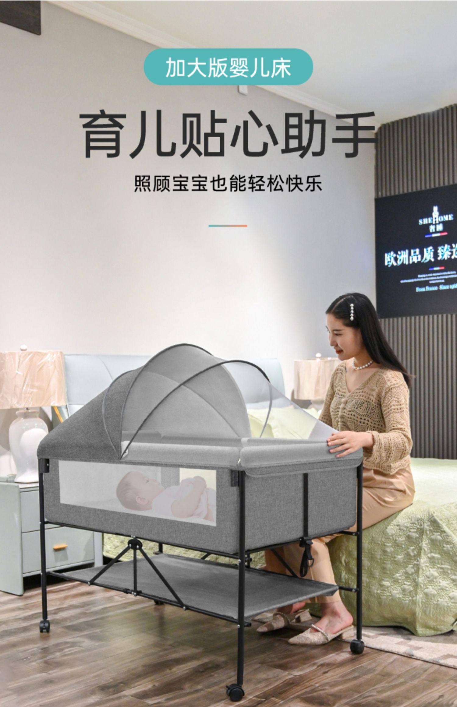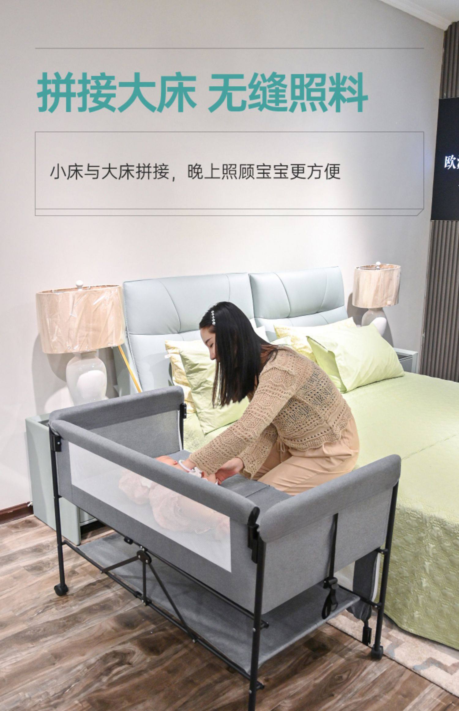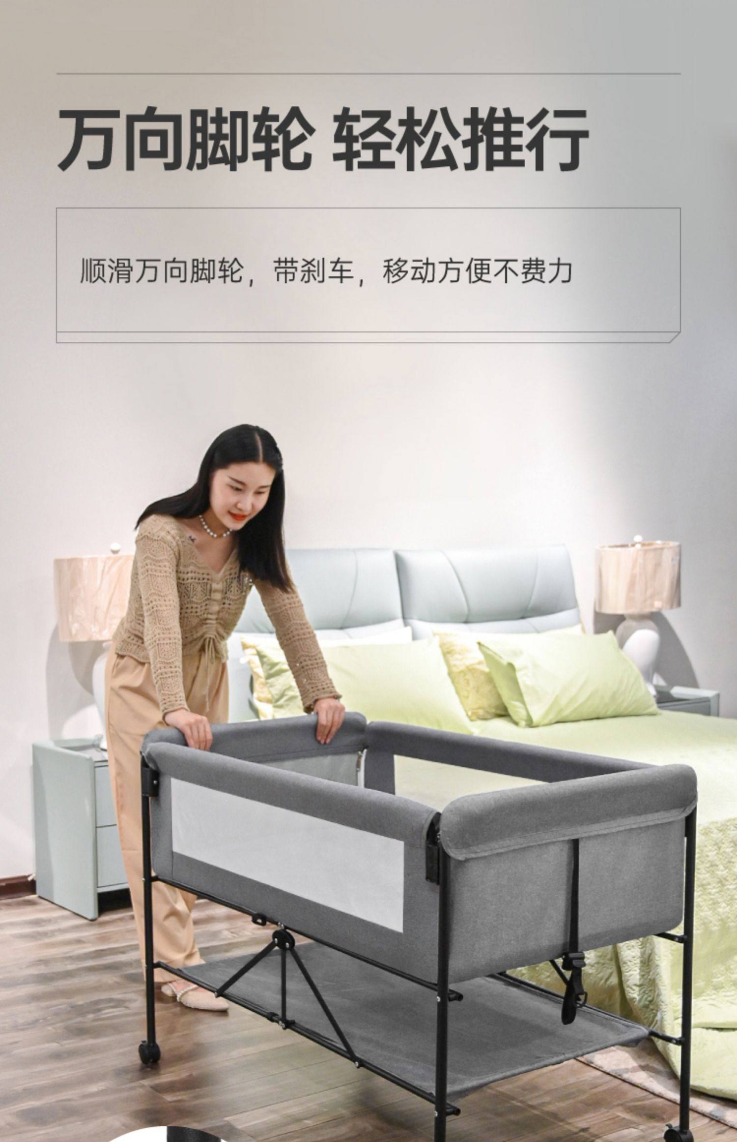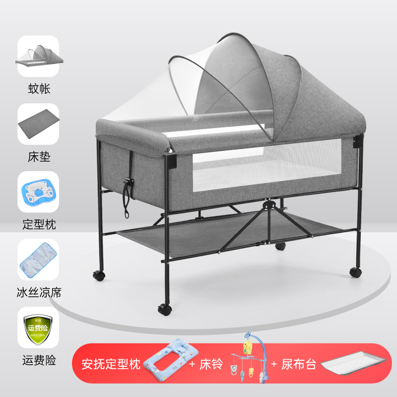 6192 widened and enlarged gray plus bedside bell plus soothing pillow➕diaper-changing table