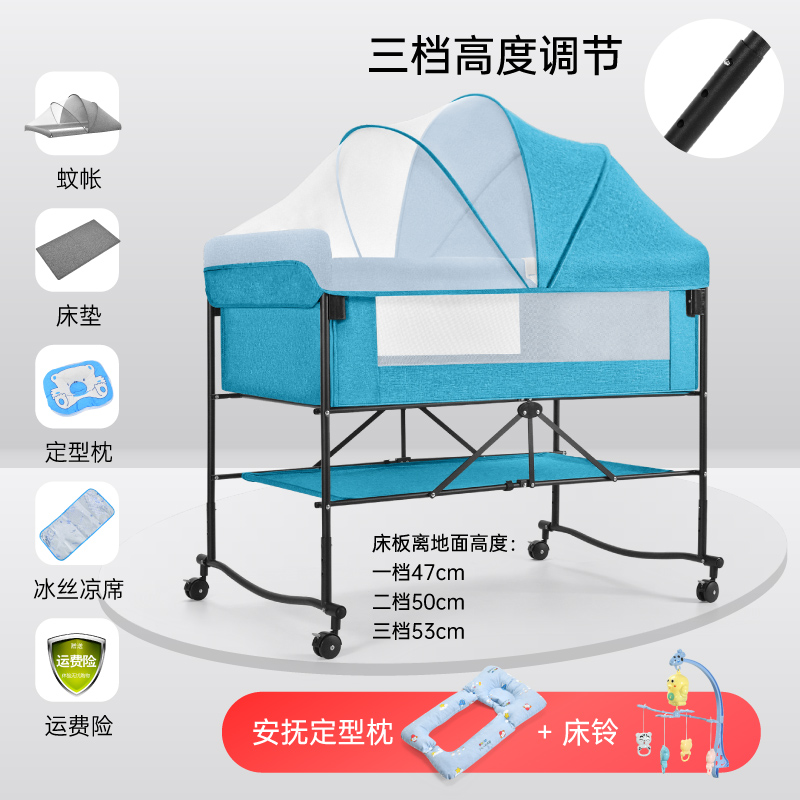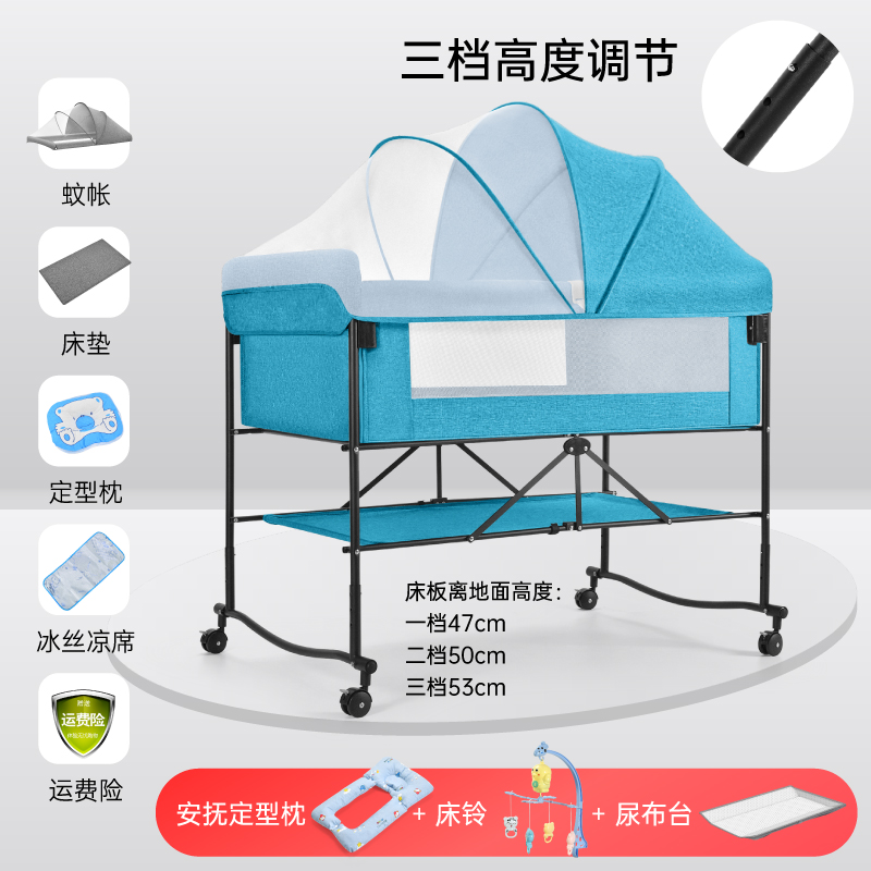 6192 widened and large sky blue plus bedside bell plus soothing pillow➕diaper-changing table